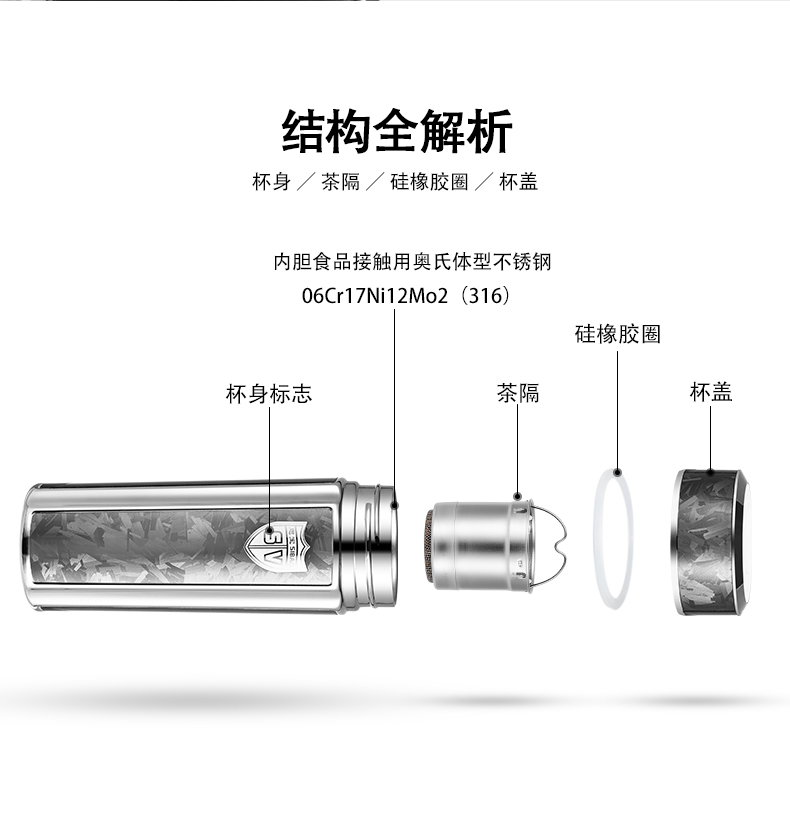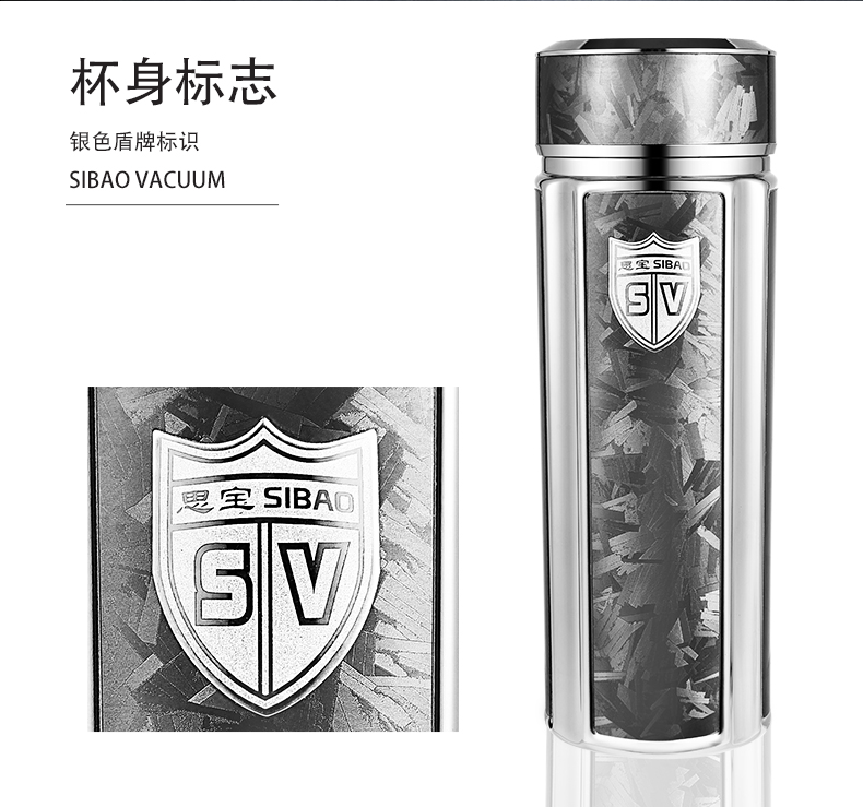 思宝旗舰店保温杯晨光B2/3真空杯办公红茶杯篆文方印水杯