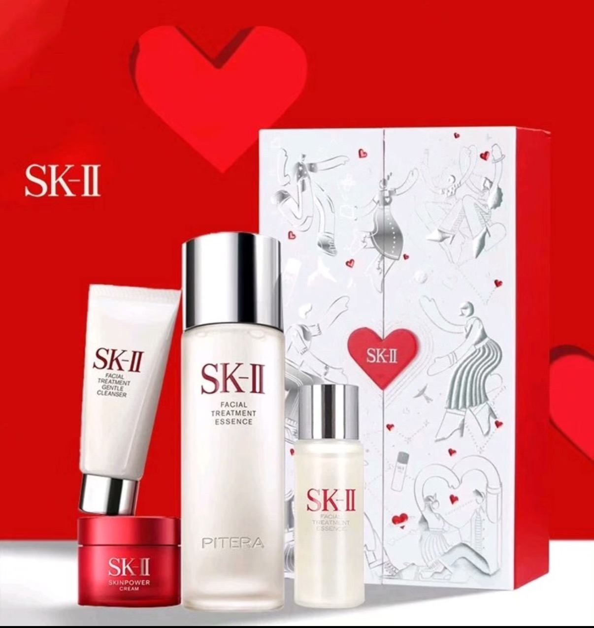 【限时加赠前男友面膜3片】SK-II节日限定晶透礼盒四件套(神仙水230ml+神仙水30ml+洁面20g+大红瓶15g)