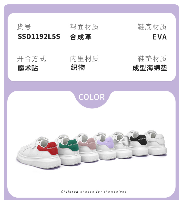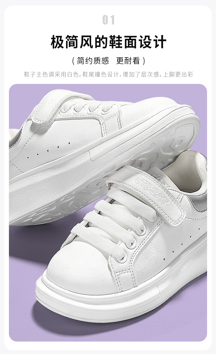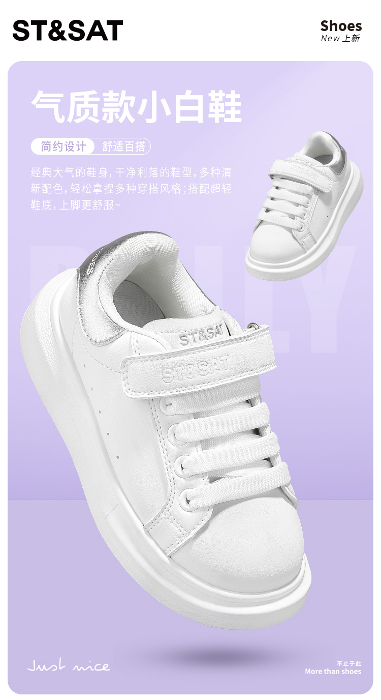 【童鞋】星期六经典百搭休闲魔术贴男女童小白鞋SSD1192L5S