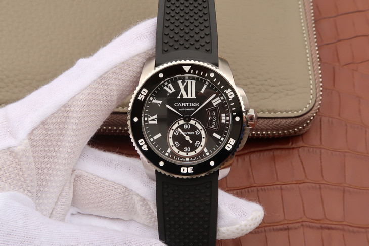 JJ卡地亚CALIBRE DE CARTIER卡历博系列W7100056潜水腕表,42mm直径,男士手表,自动机芯,密底,硅胶表带。
