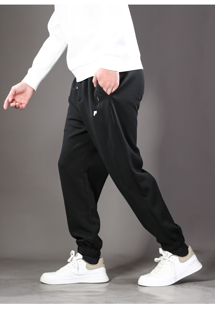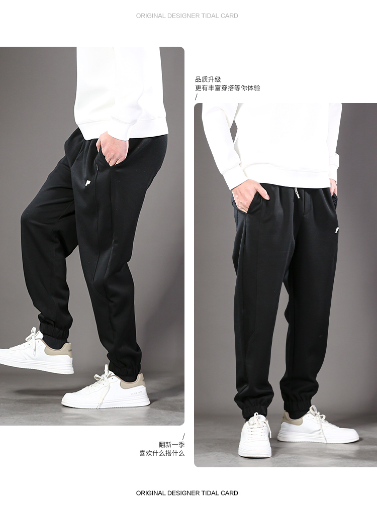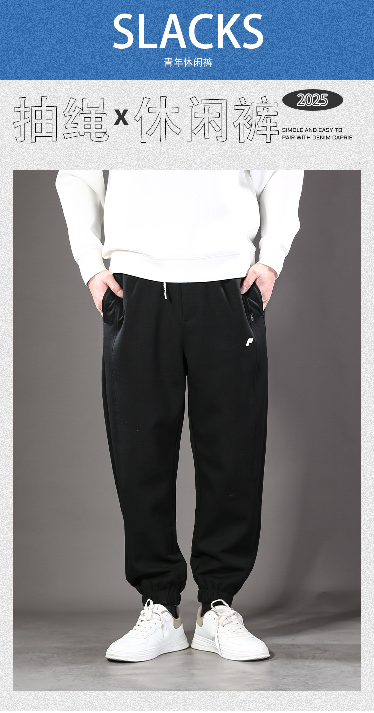 DRONKOO 2025 抽绳松紧腰左长短竖线刺绣橡筋口中厚卫裤