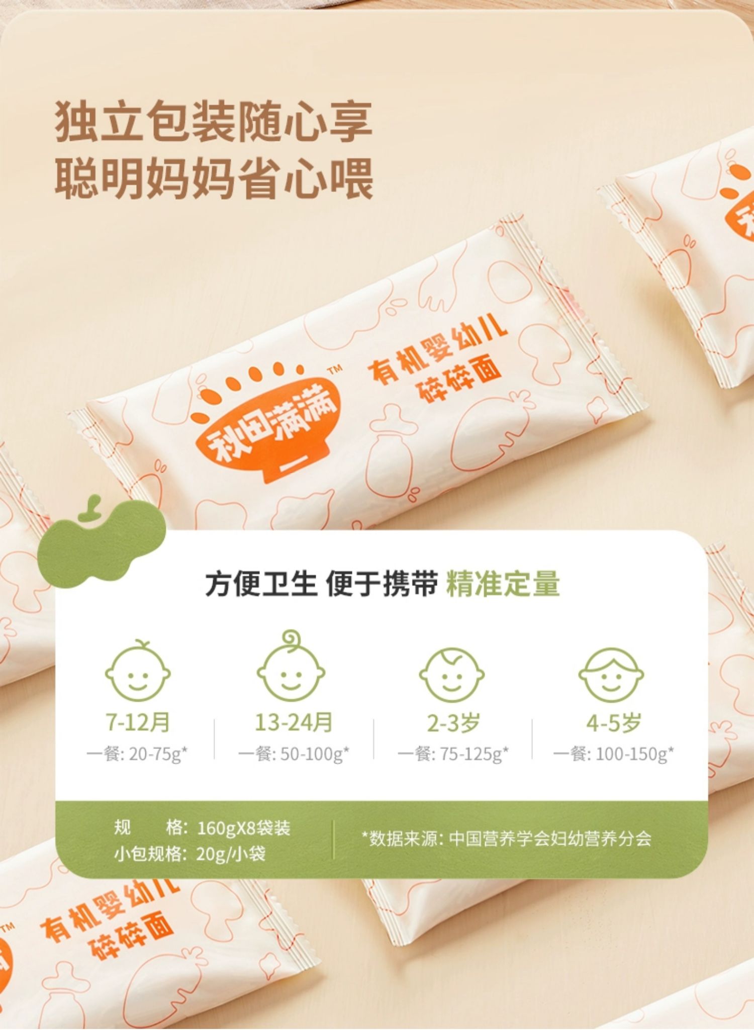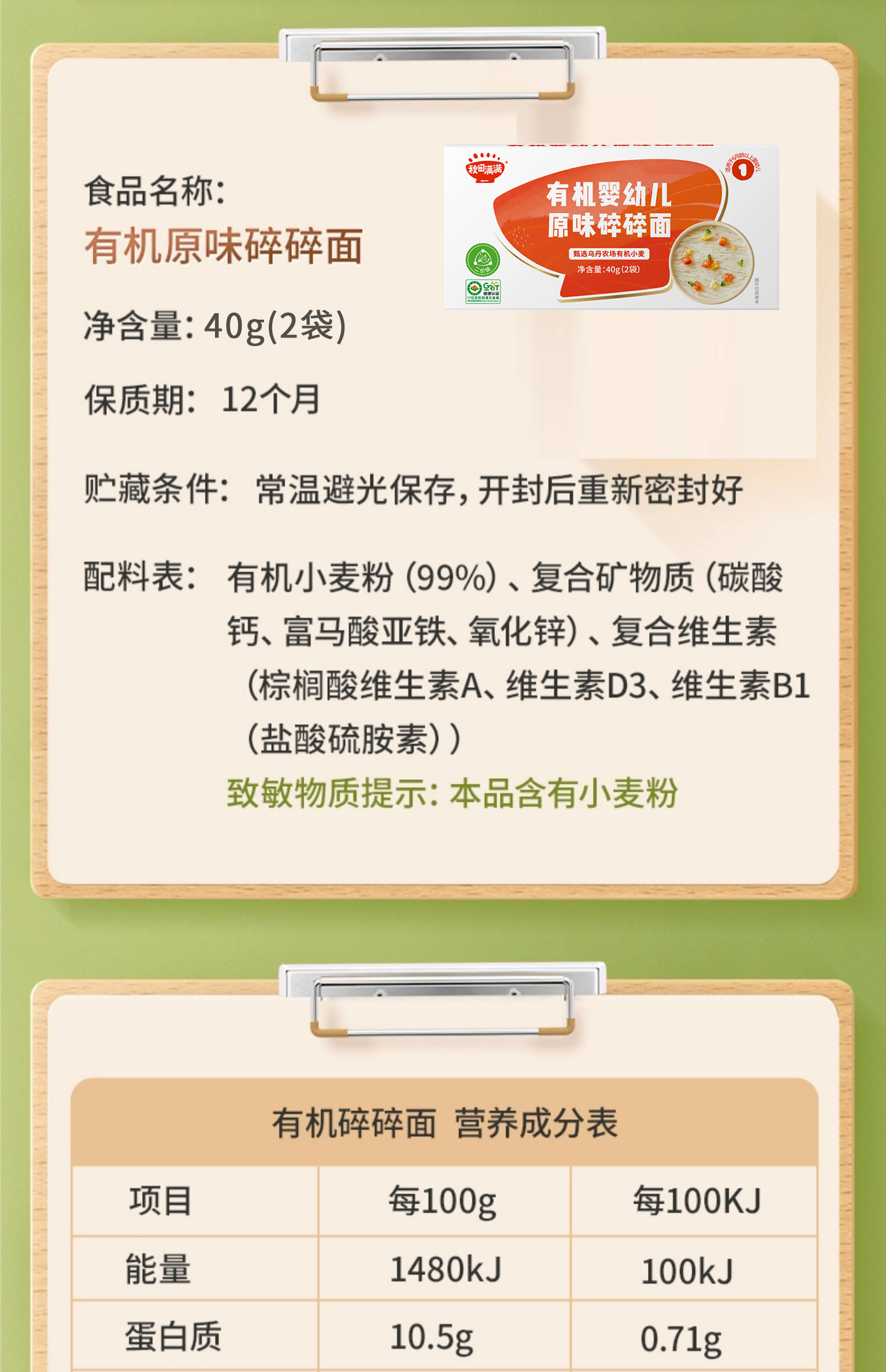 秋田满满有机婴幼儿原味碎碎面40g(2袋)