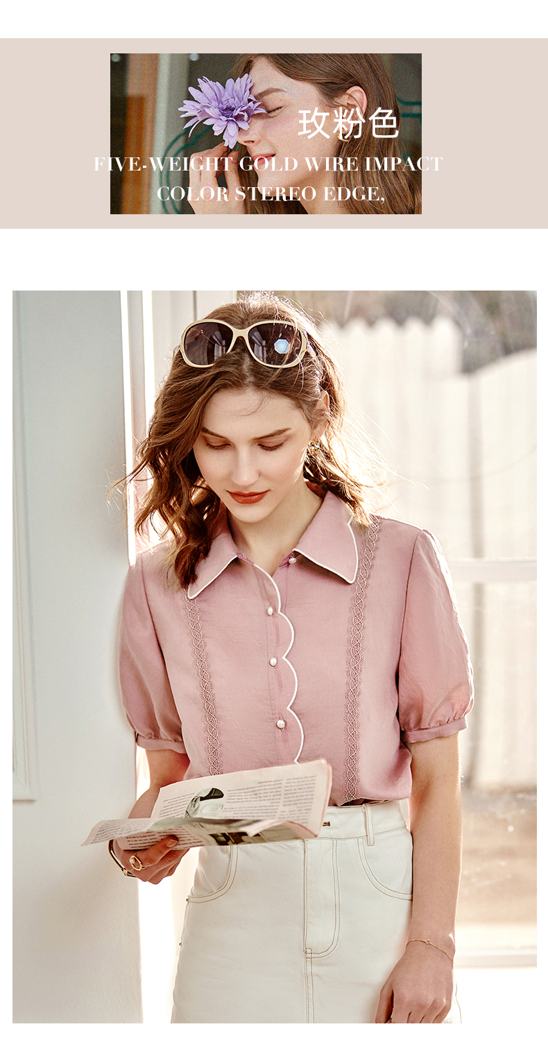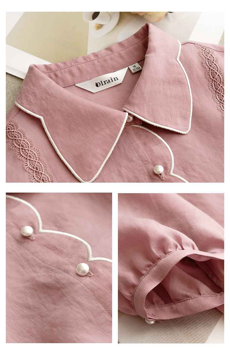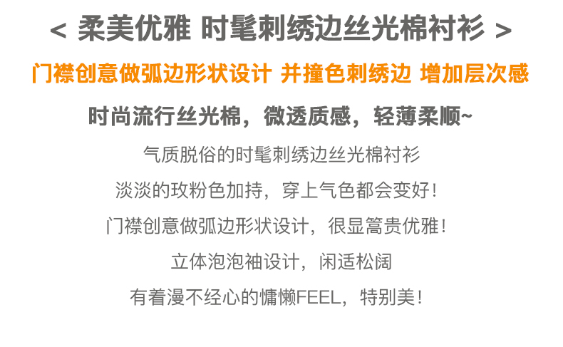 欧芮儿丝光棉衬衫女2021新款复古洋气泡泡袖刺绣宽松雪纺衫