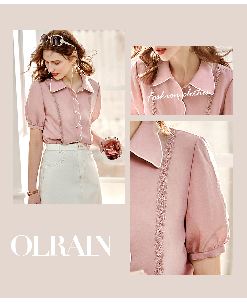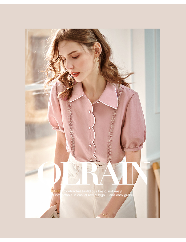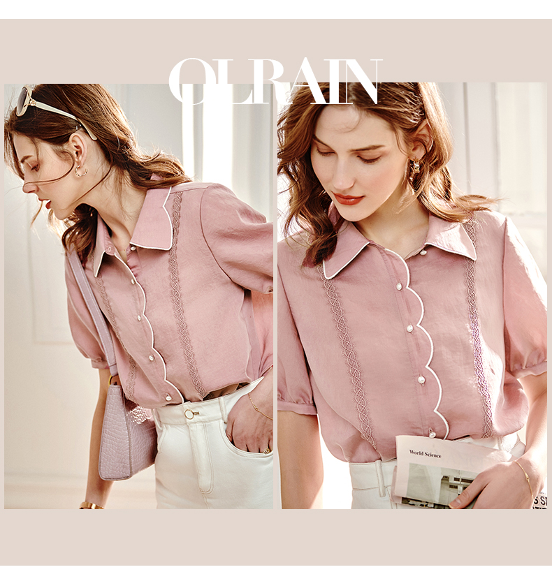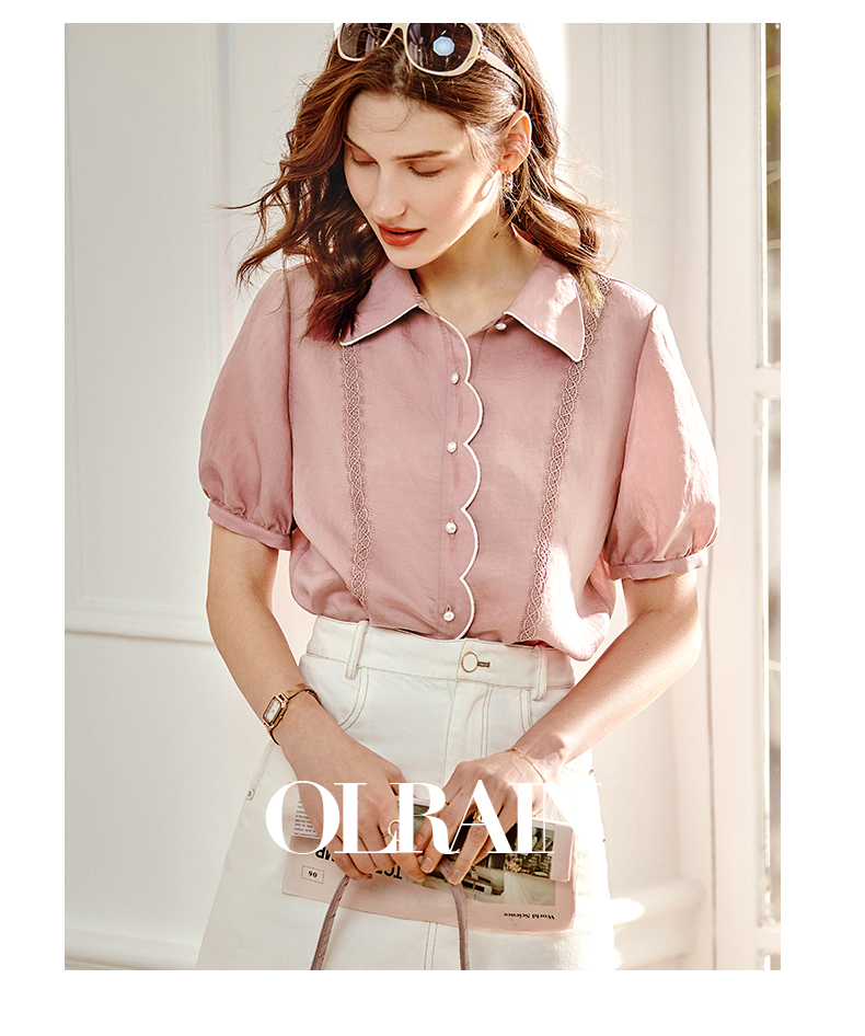 OLrain法式高级穿搭粉色短袖T恤女夏季2022年新款宽松设计感上衣
