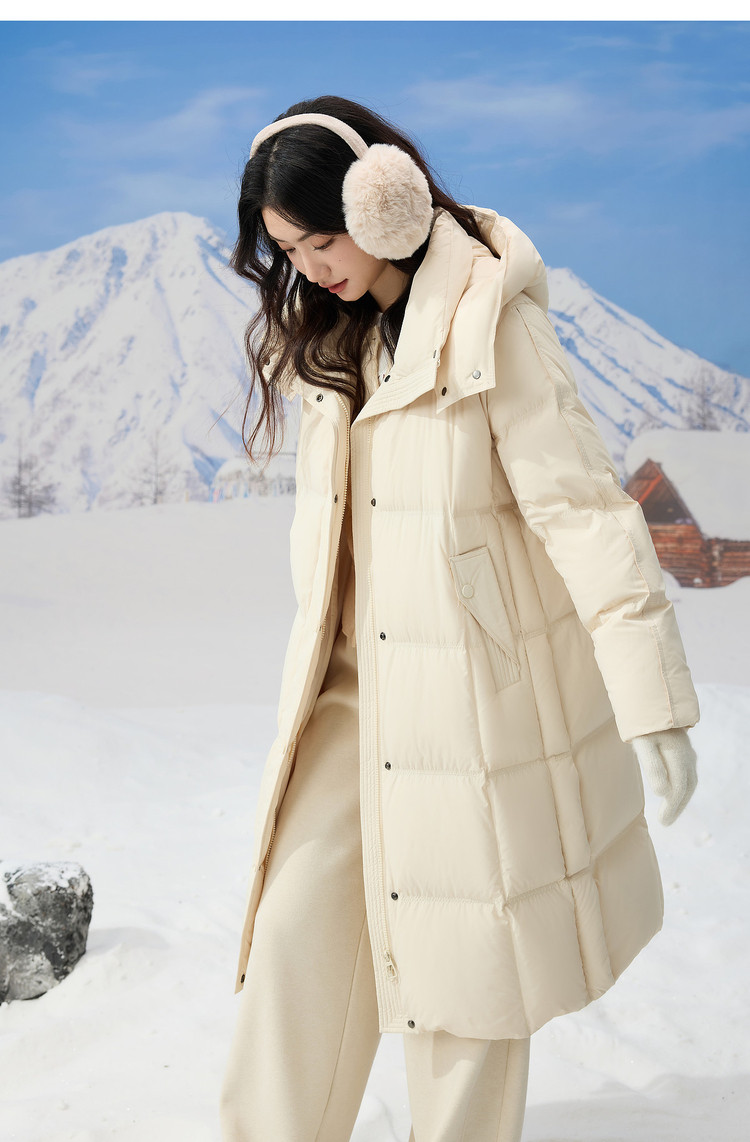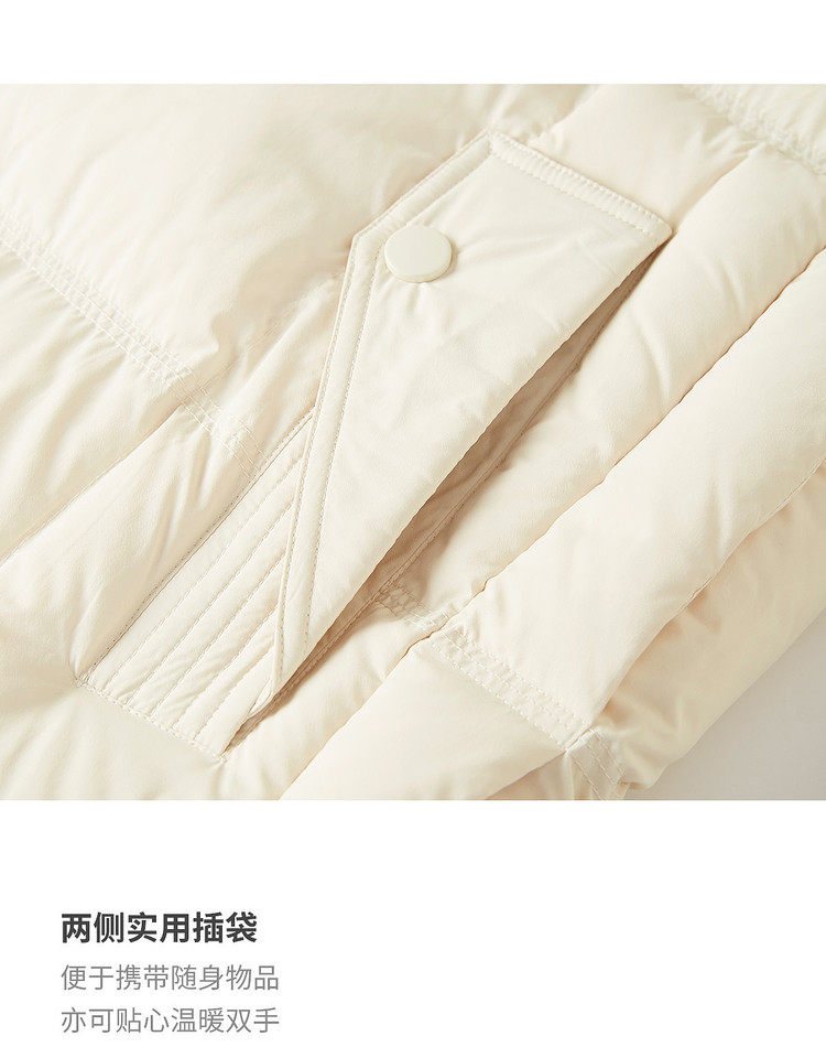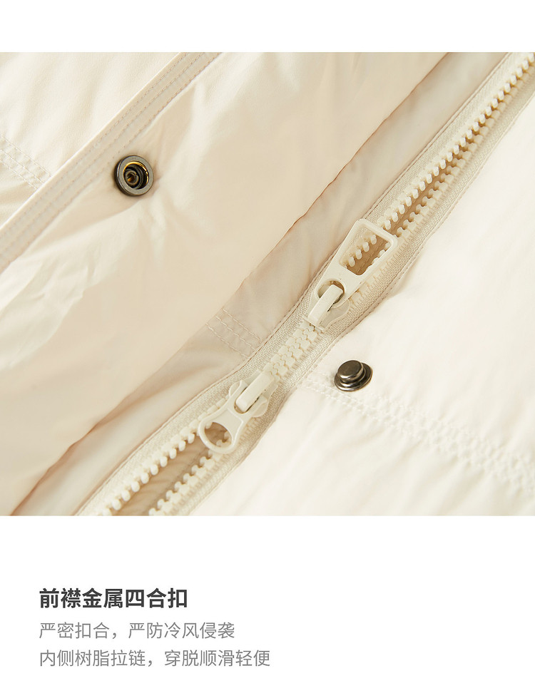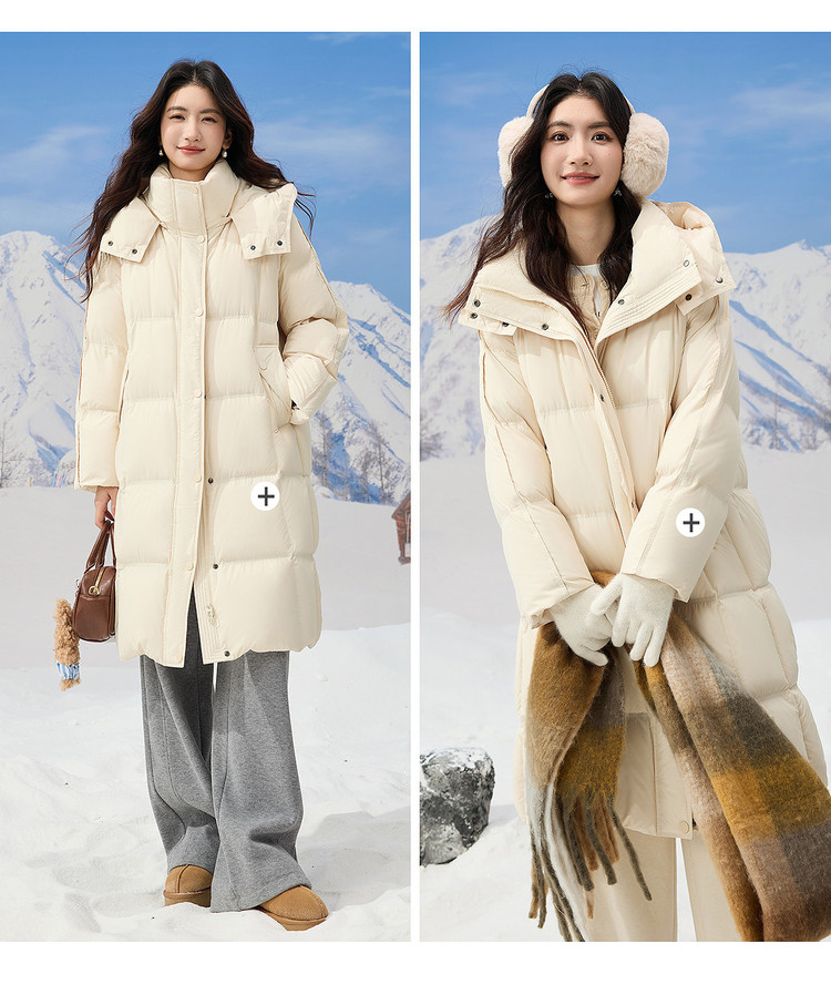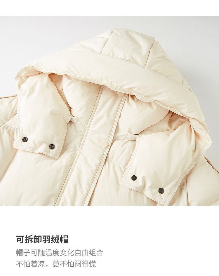 【12/24新品5.5折】熙世界「小暖炉羽绒服」可拆卸连帽保暖冬季中长款外套女士白鸭绒