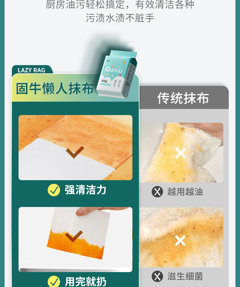 「抽取壁挂式!干湿两用」一次性懒人抹布 厨房用品干湿两用加厚吸水吸油清洁工具