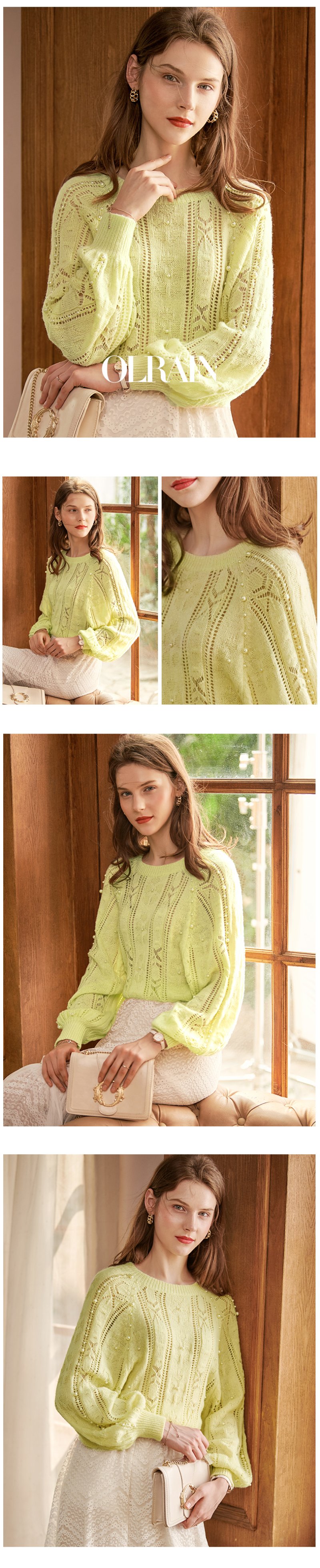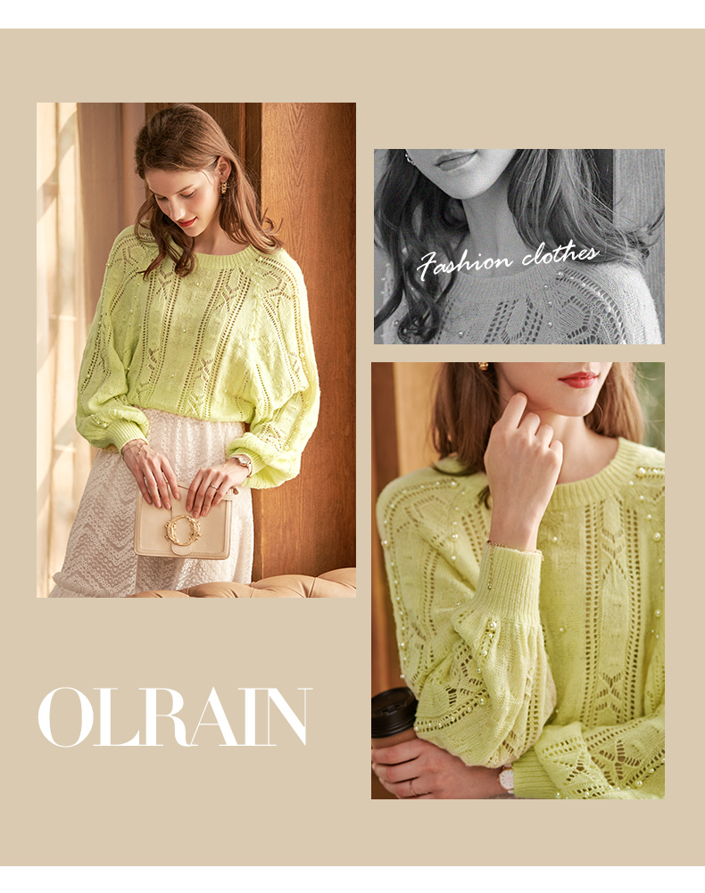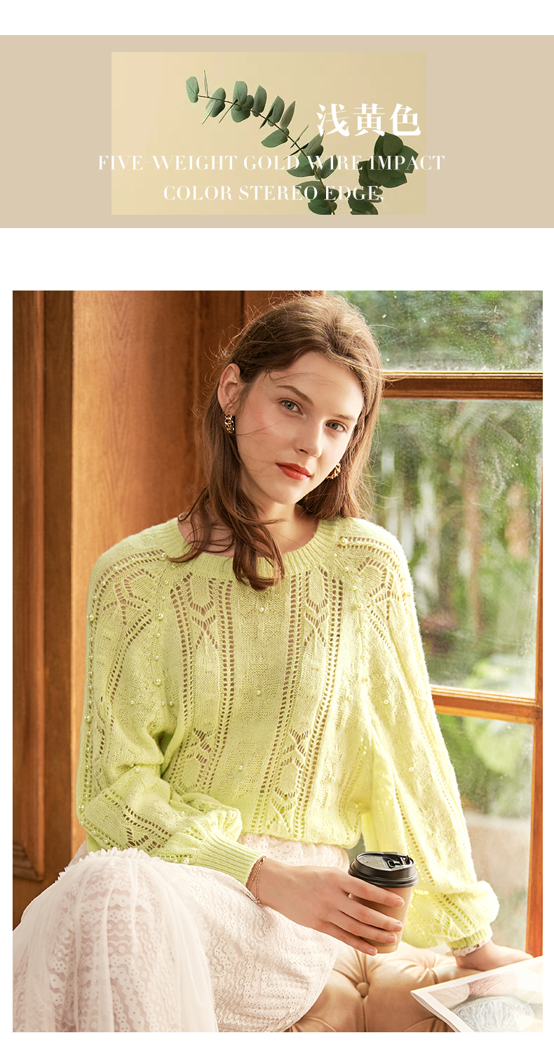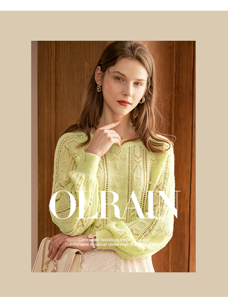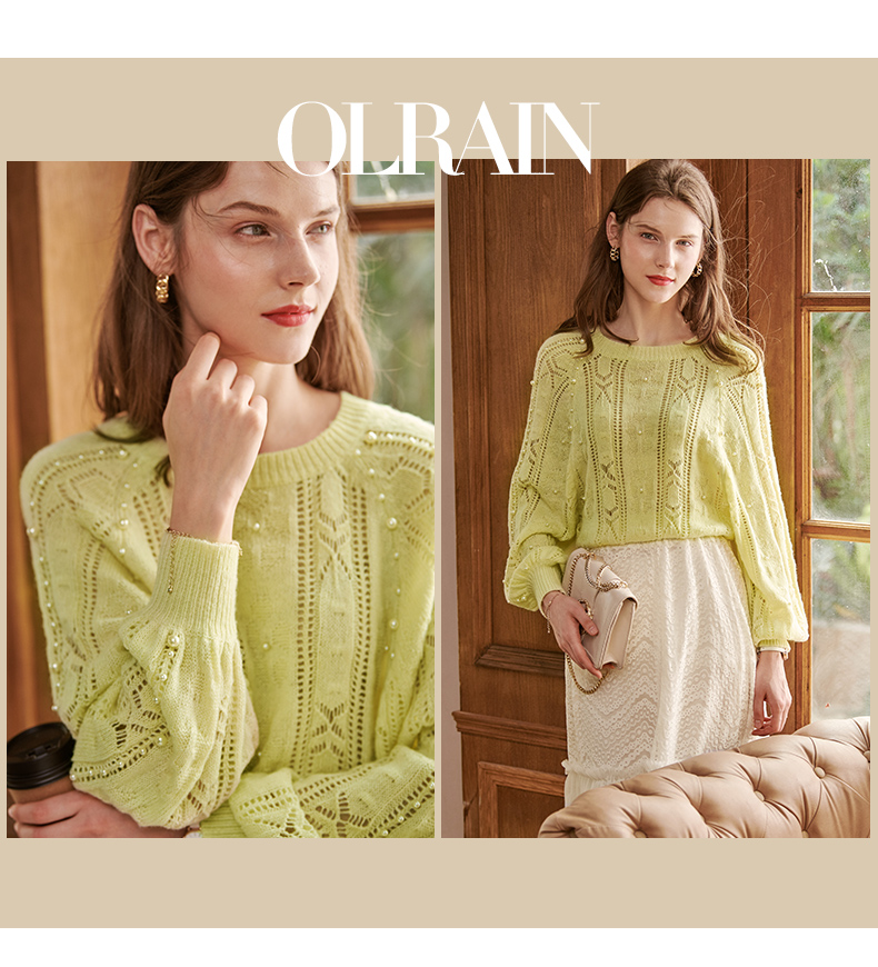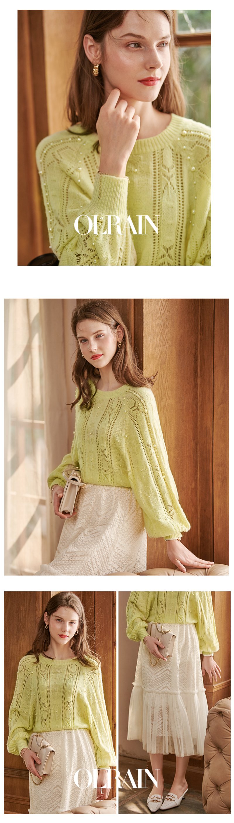 欧芮儿镂空套头打底衫女新款内搭针织衫洋气钉珠上衣