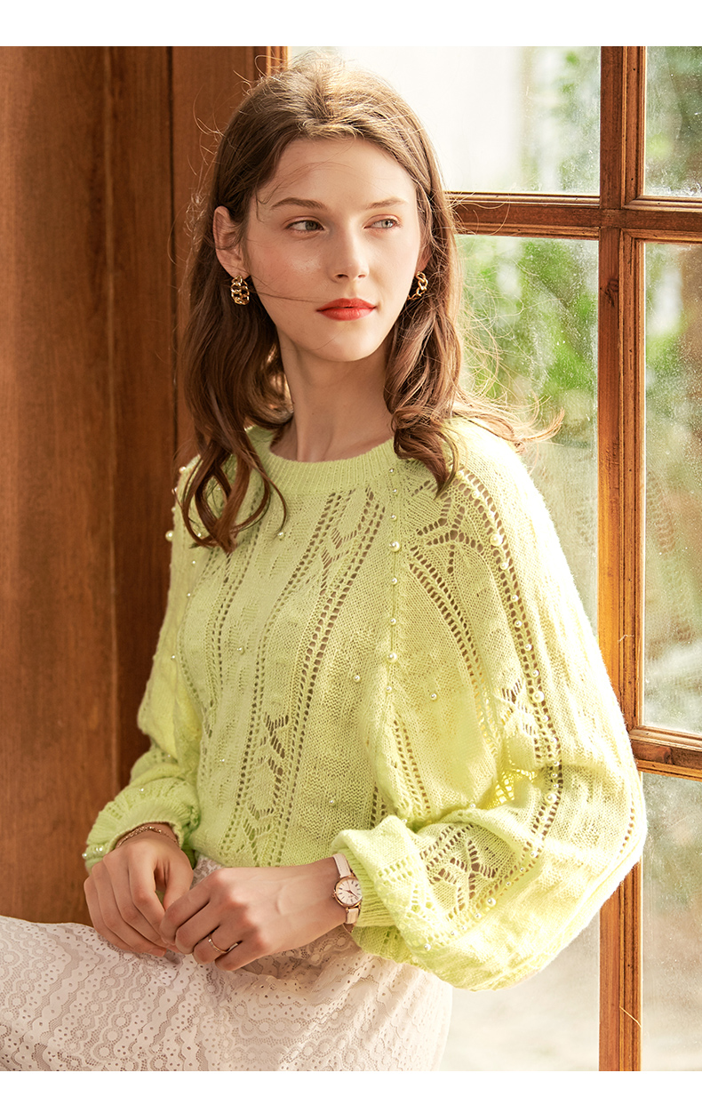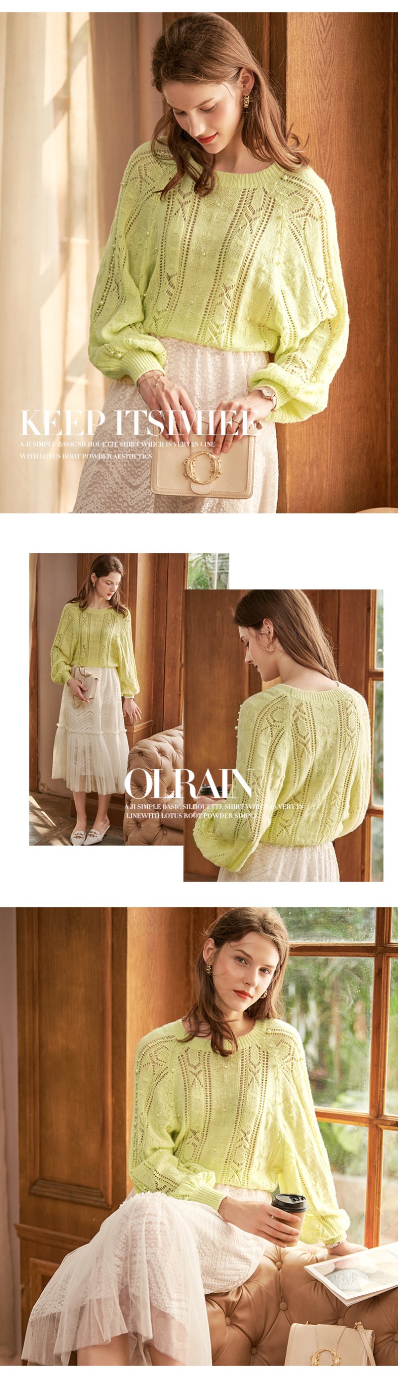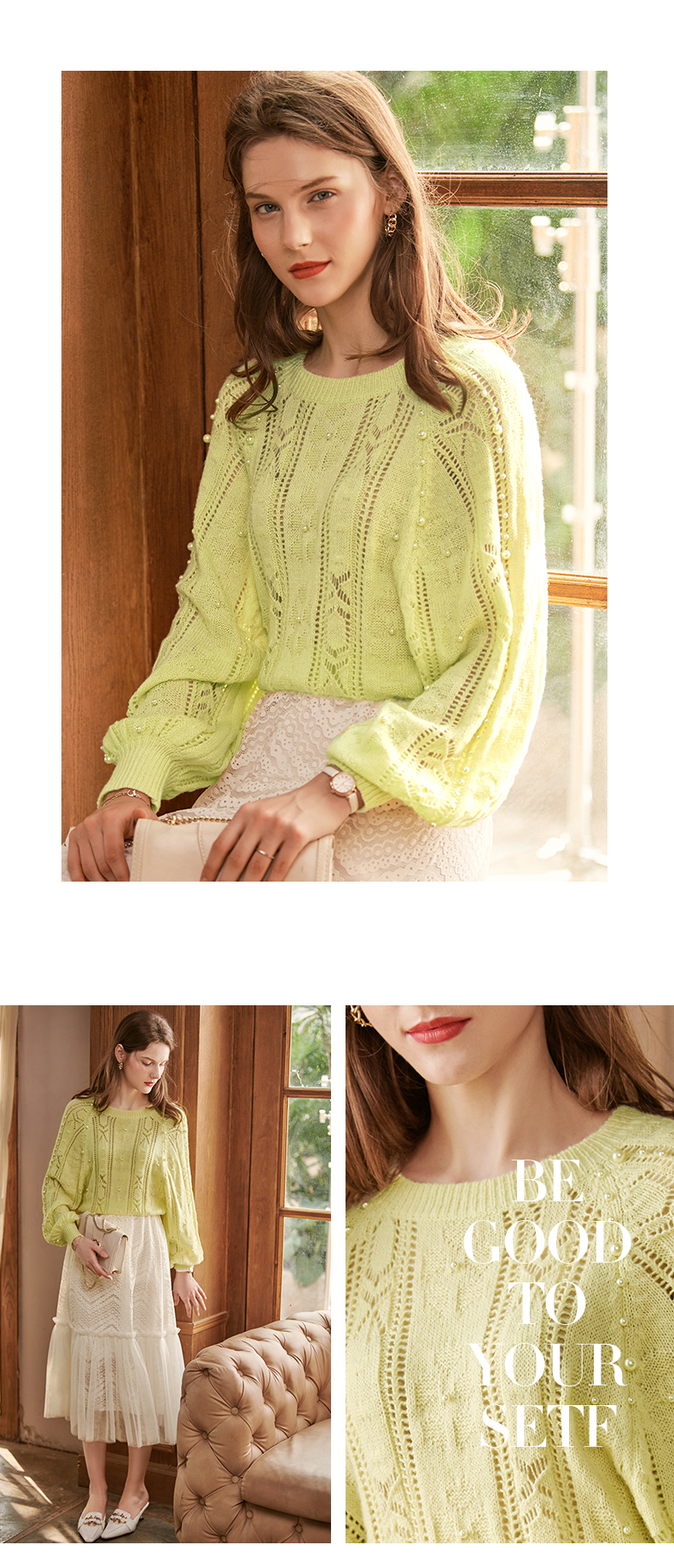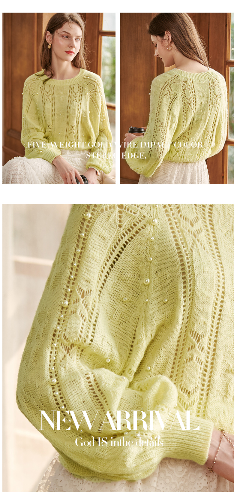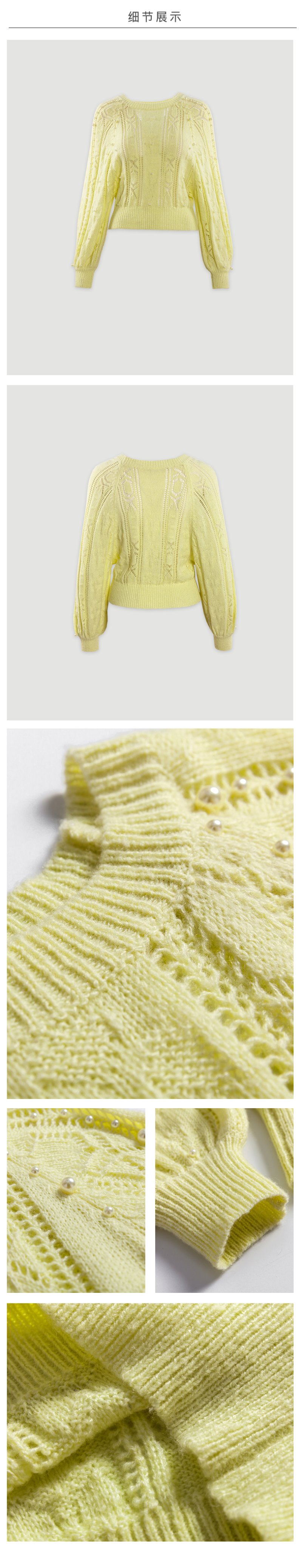 欧芮儿镂空套头打底衫女新款内搭针织衫洋气钉珠上衣