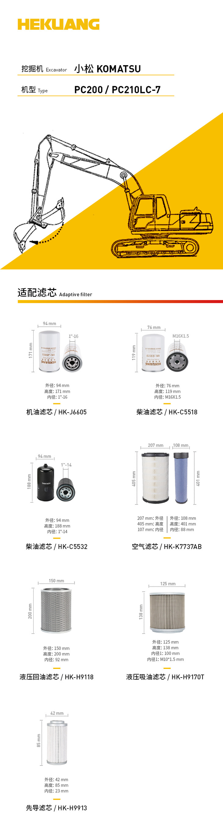 KOMATSU小松PC200/210LC-7挖掘机滤芯 机油柴油空气滤芯 液压油先导滤芯