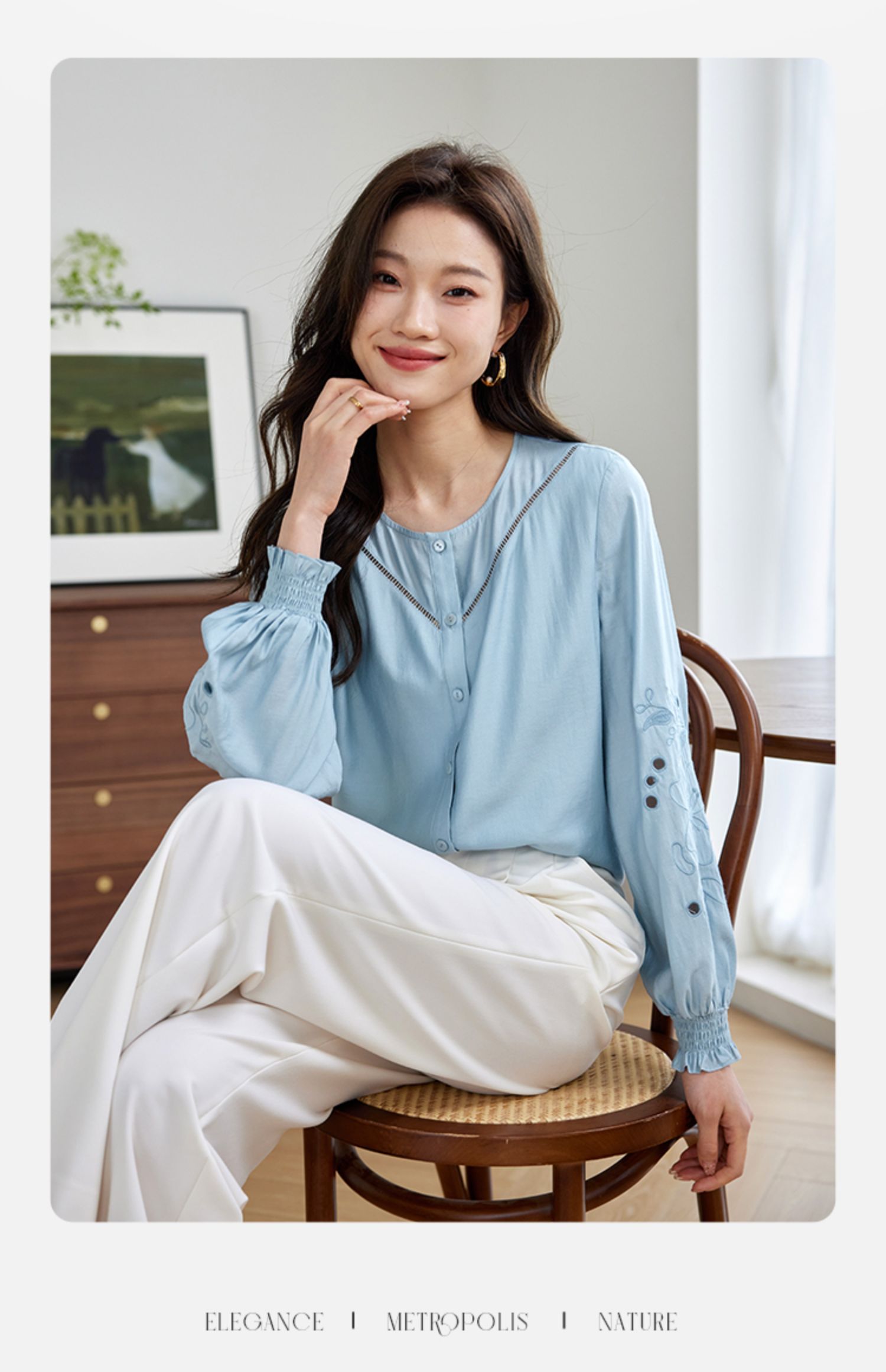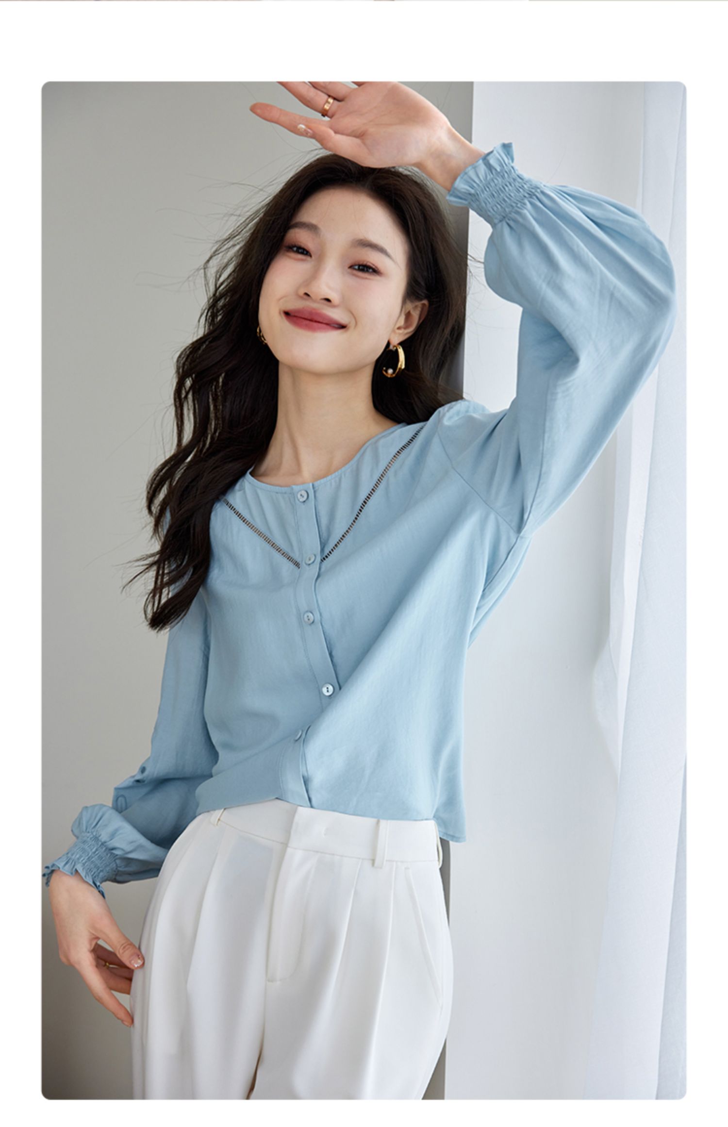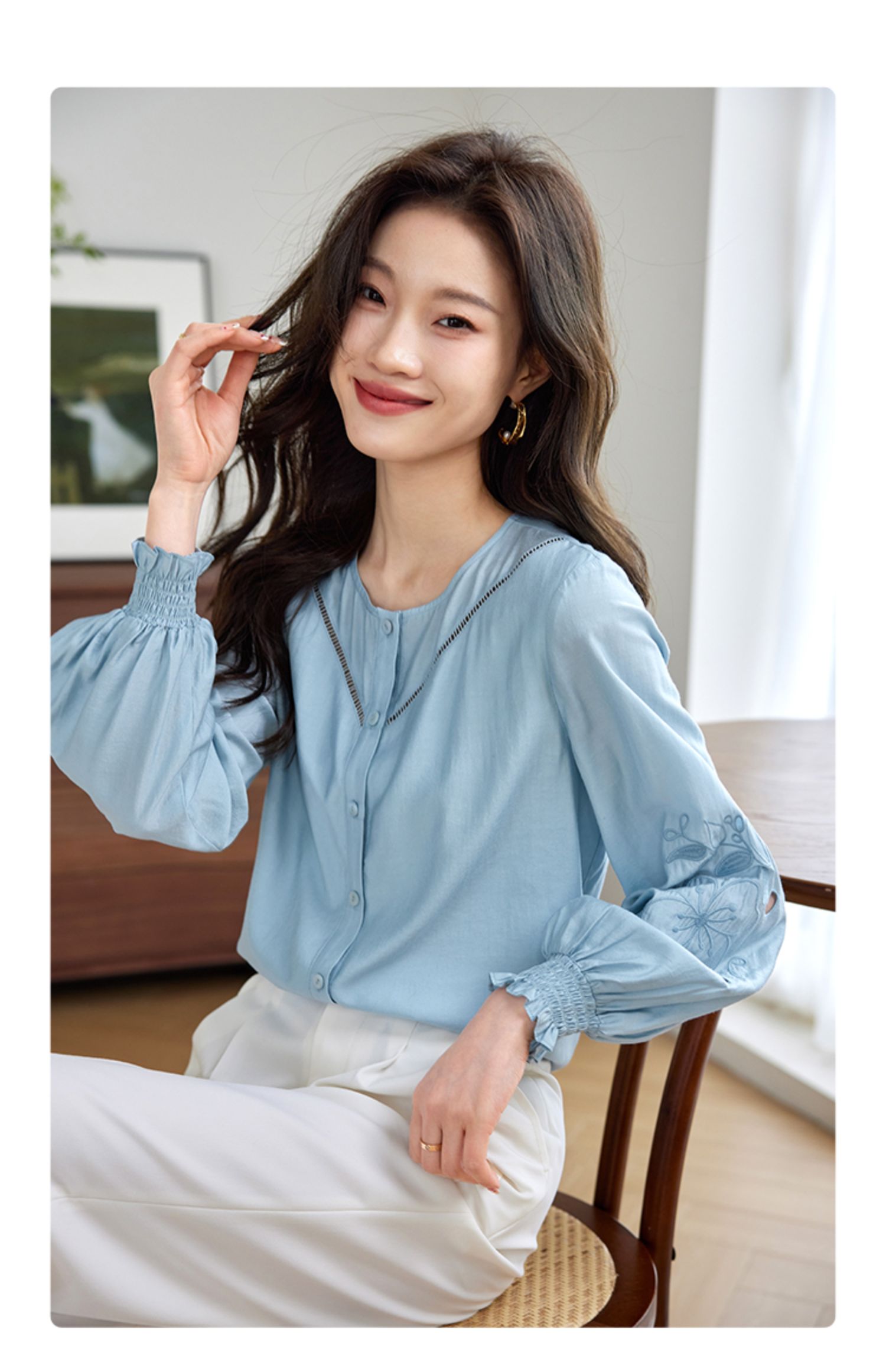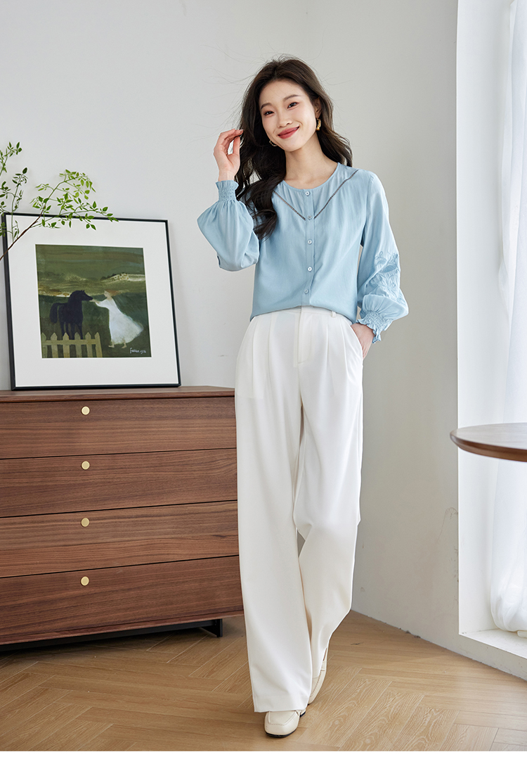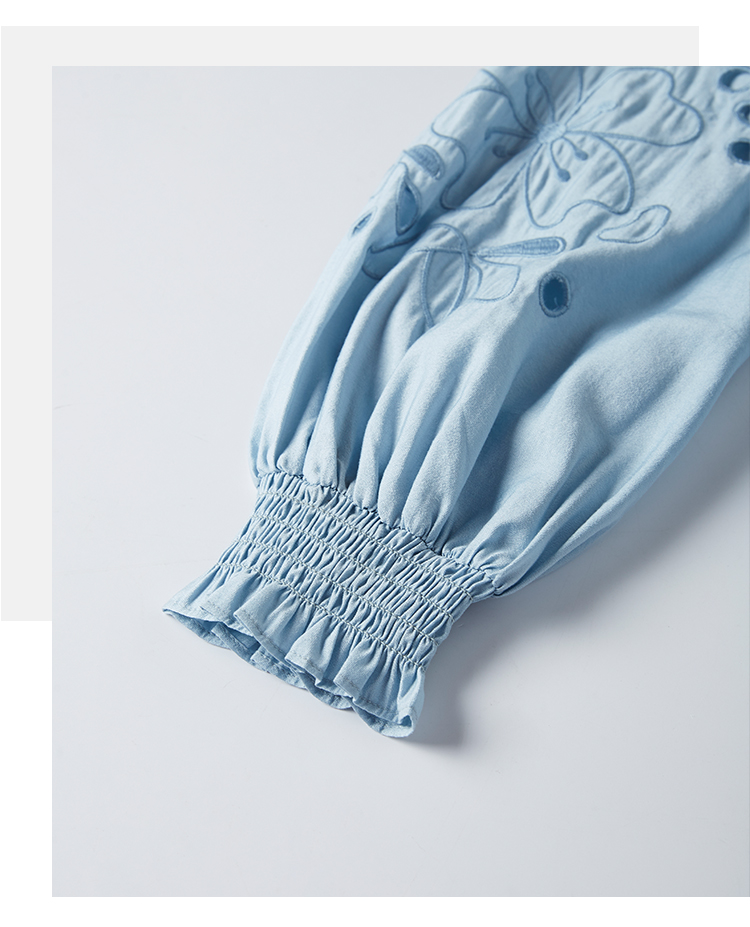 【年终特卖】熙世界2025秋季新款法式刺绣泡泡袖衬衣设计感气质显瘦衬衫上衣