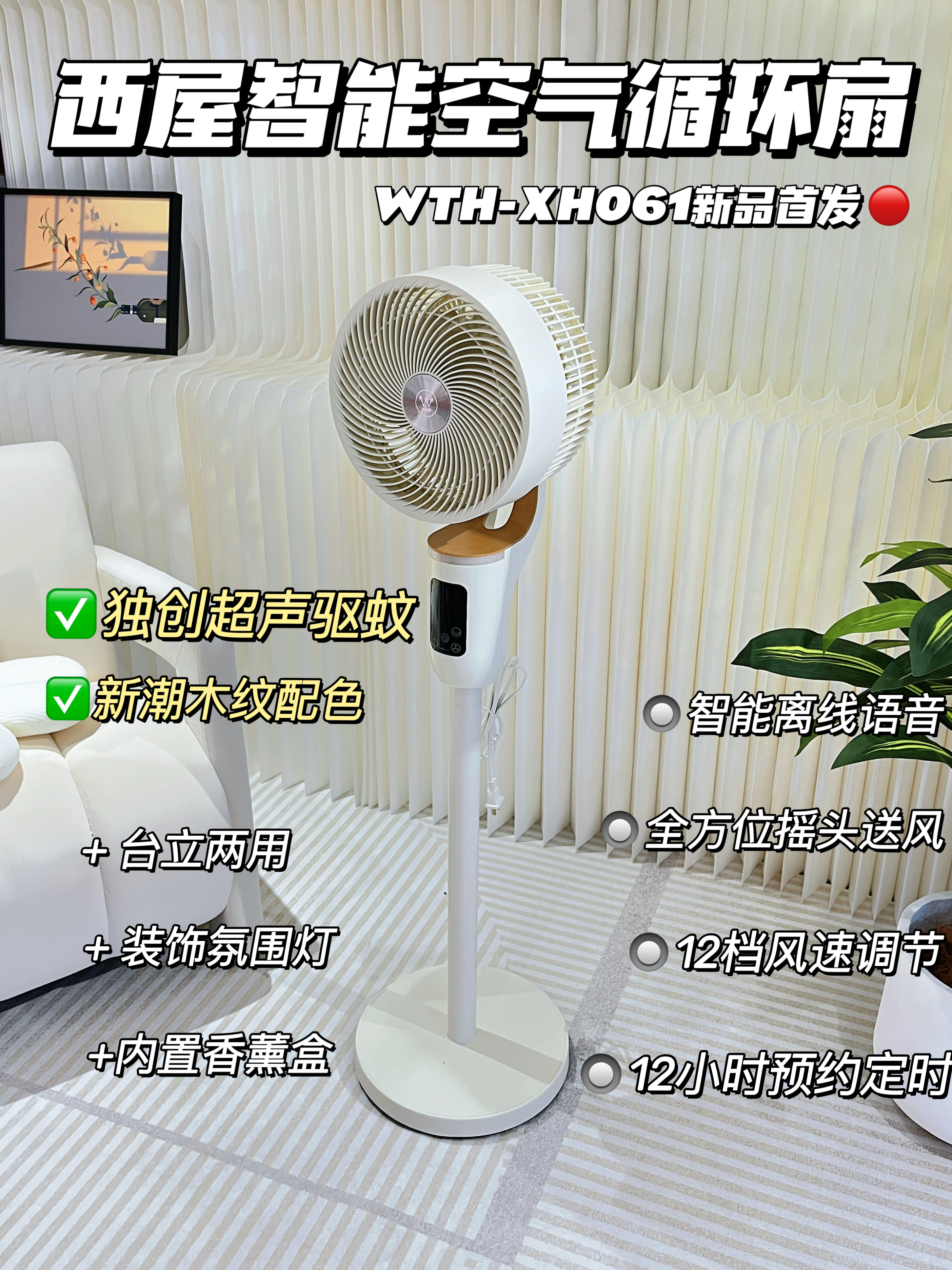 智能升级款十大优势功能:1️⃣四重操作模式:智慧语音功能,快速语音唤醒遥控,解放双手;另有触控屏幕、遥控器、小程序等四种操作,简便快捷。2️⃣加速空气循环:升级涡轮喷压系统,澎湃风量,促进室内空气流通,激活空气,清风环绕3️⃣全方位摇头:上下左右全自动3D摇头,超长风距,广域送风4️⃣十二档风速:智能变频,语音调节风速,另有自然风、婴儿风、睡眠风多种模式可选。5️⃣独创超声波驱蚊:告别夏季蚊虫困扰。6️⃣新潮木纹配色:更添家居感受,增加室内温馨感。7️⃣长定时预约:12小时预约定时,45分贝低档轻音8️⃣台立两用:台式、立式两用,三种高度随心选择。9️⃣夜灯功能:自带暖光小夜灯,静柔不刺眼