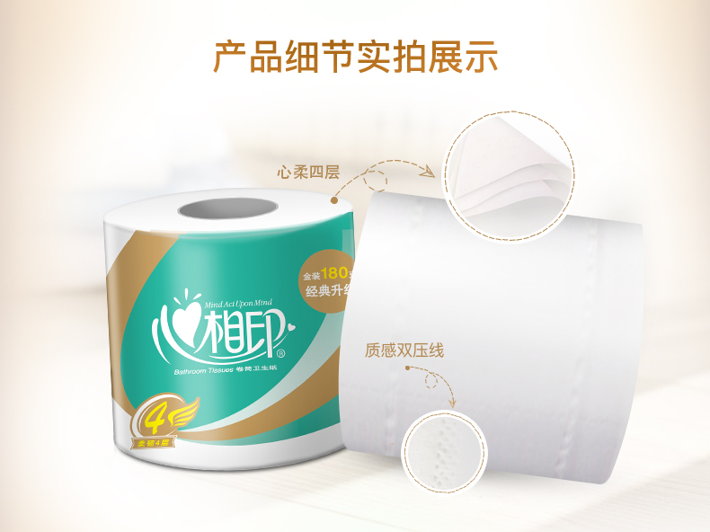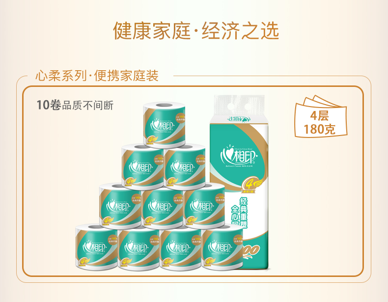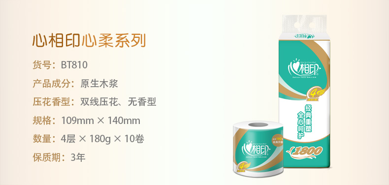 【心相印专区】经典心柔180克10粒装四层卷筒BT810 10卷*6提纸