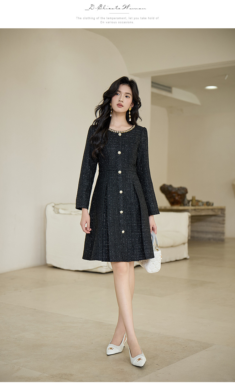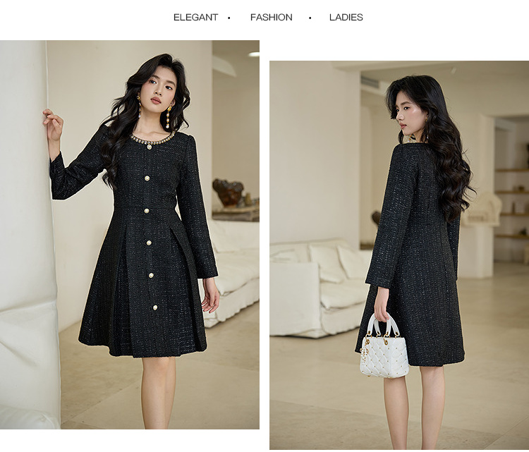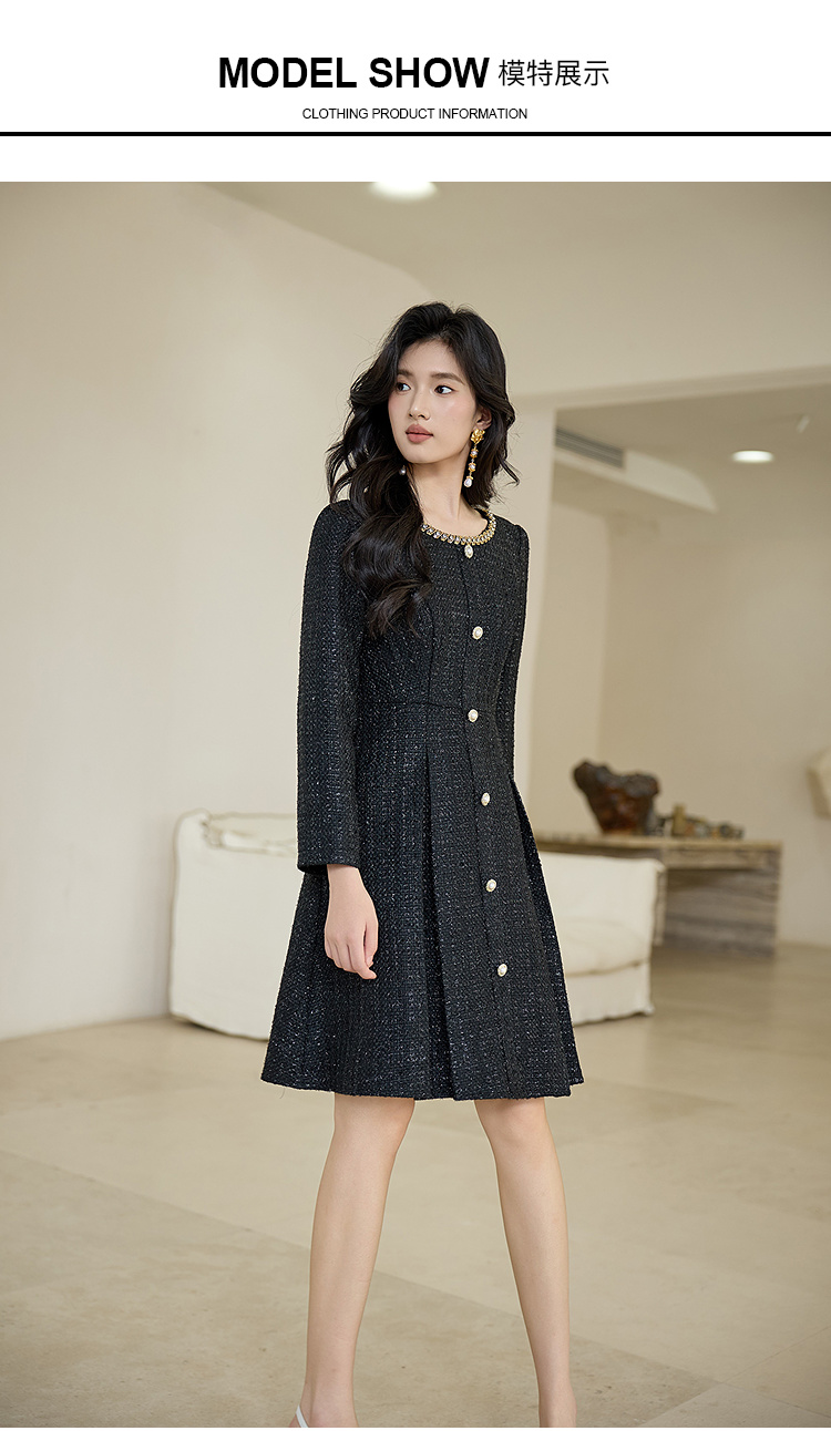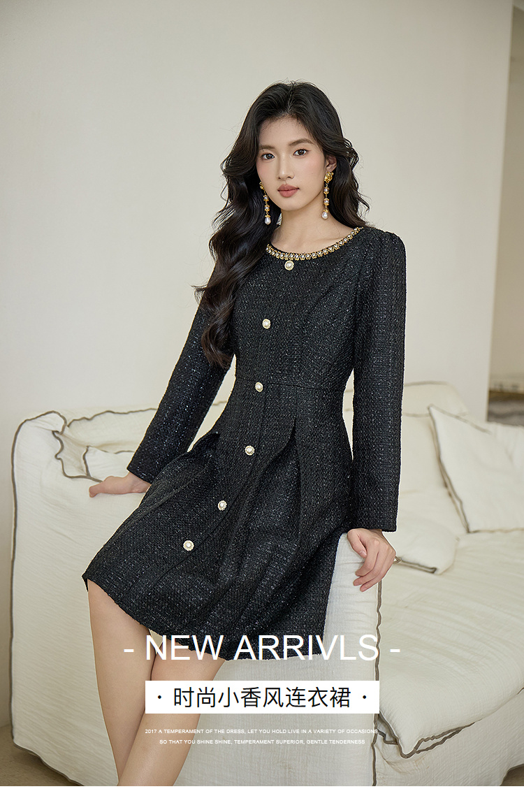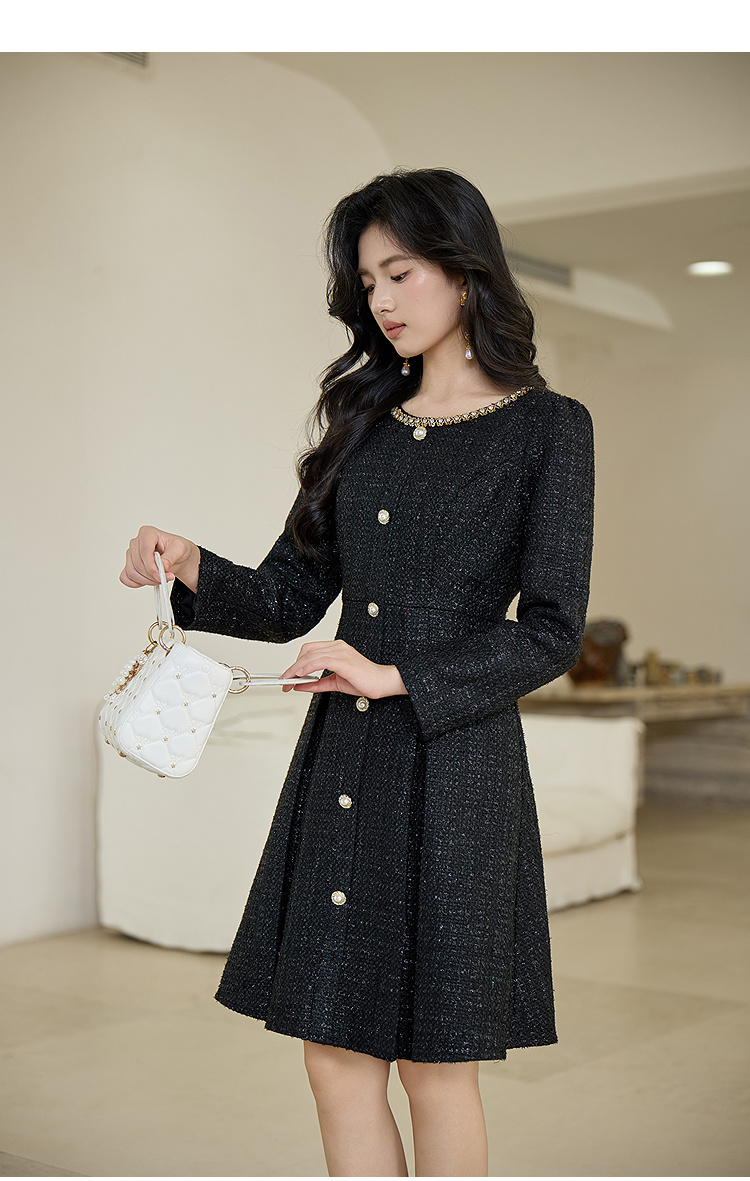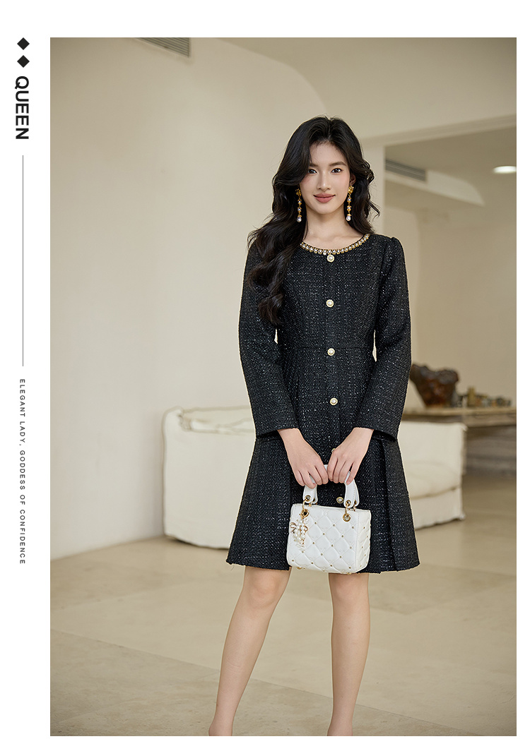 奢姿大码女装2025秋季减龄钻饰小香风连衣裙胖妹妹粗花时尚裙子