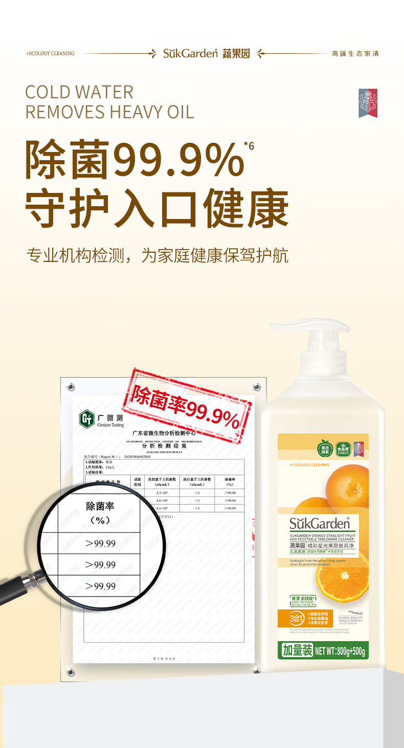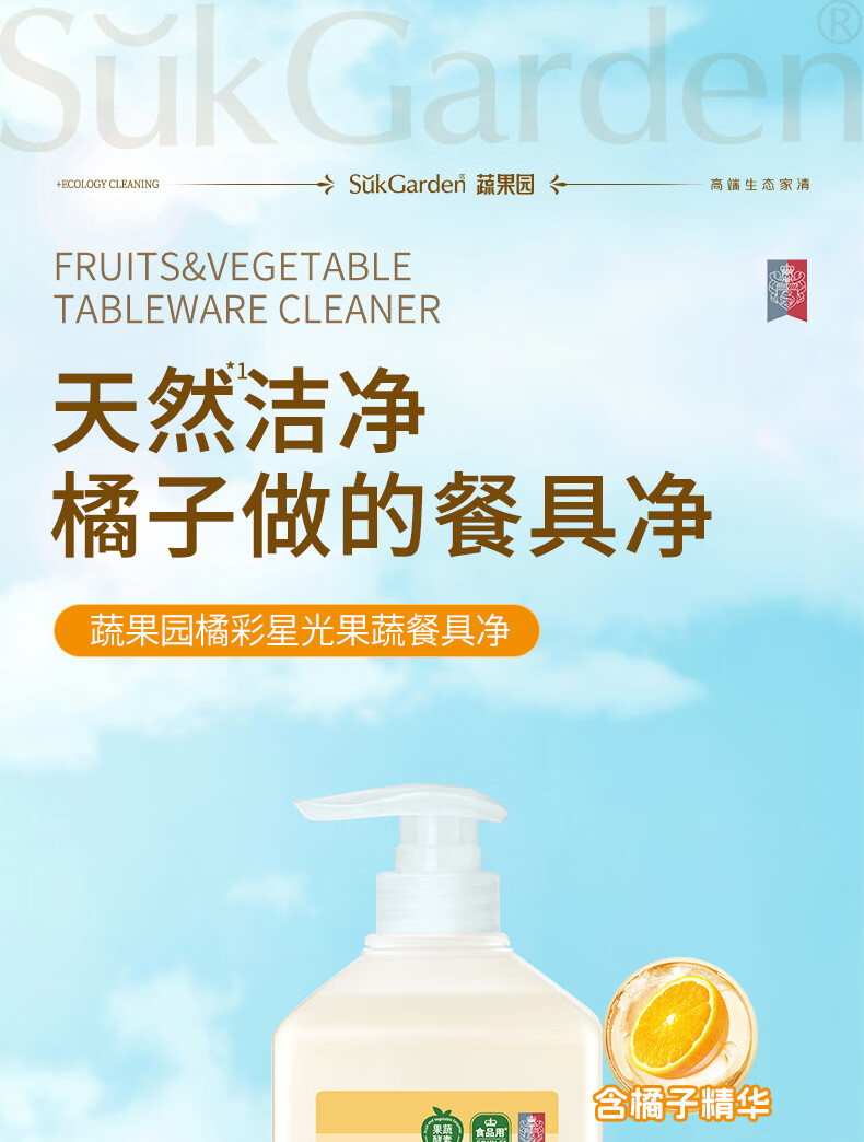 【分仓直发包邮】SukGarden蔬果园橘彩星光果蔬餐具净泵装800g+500g(1.3kg)