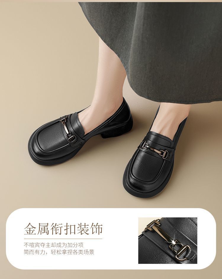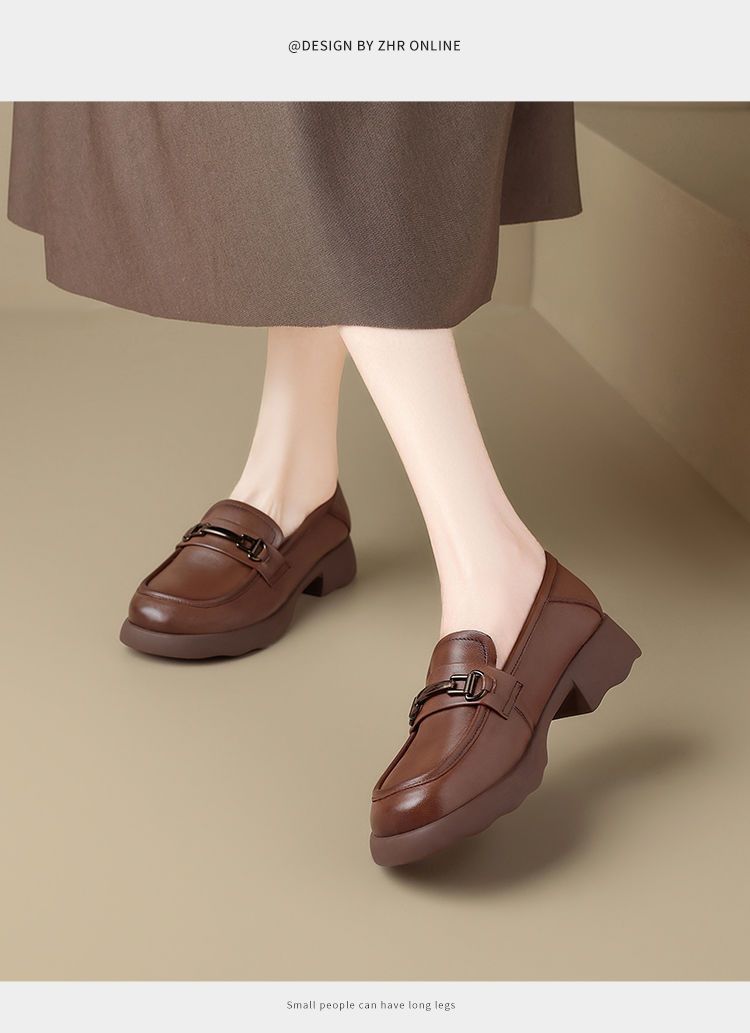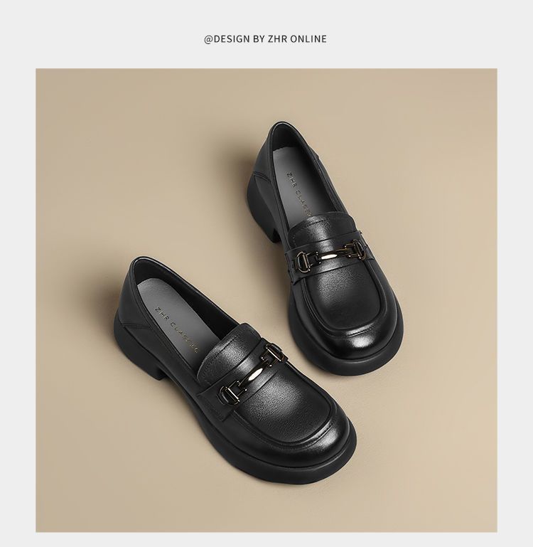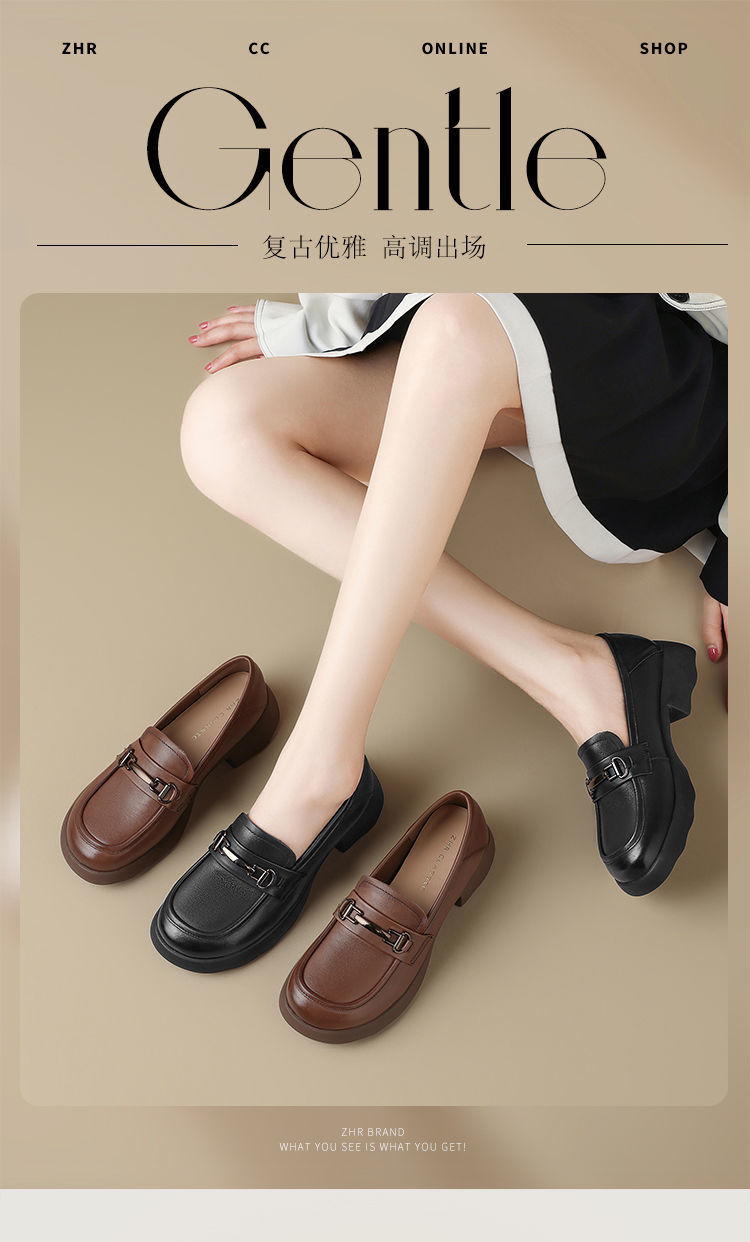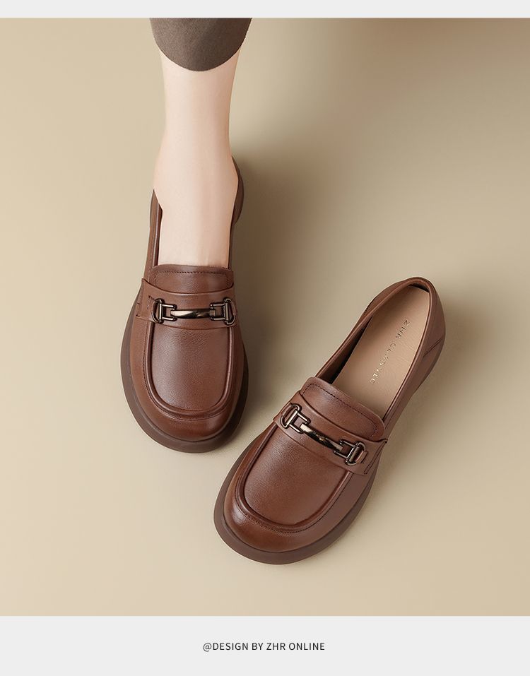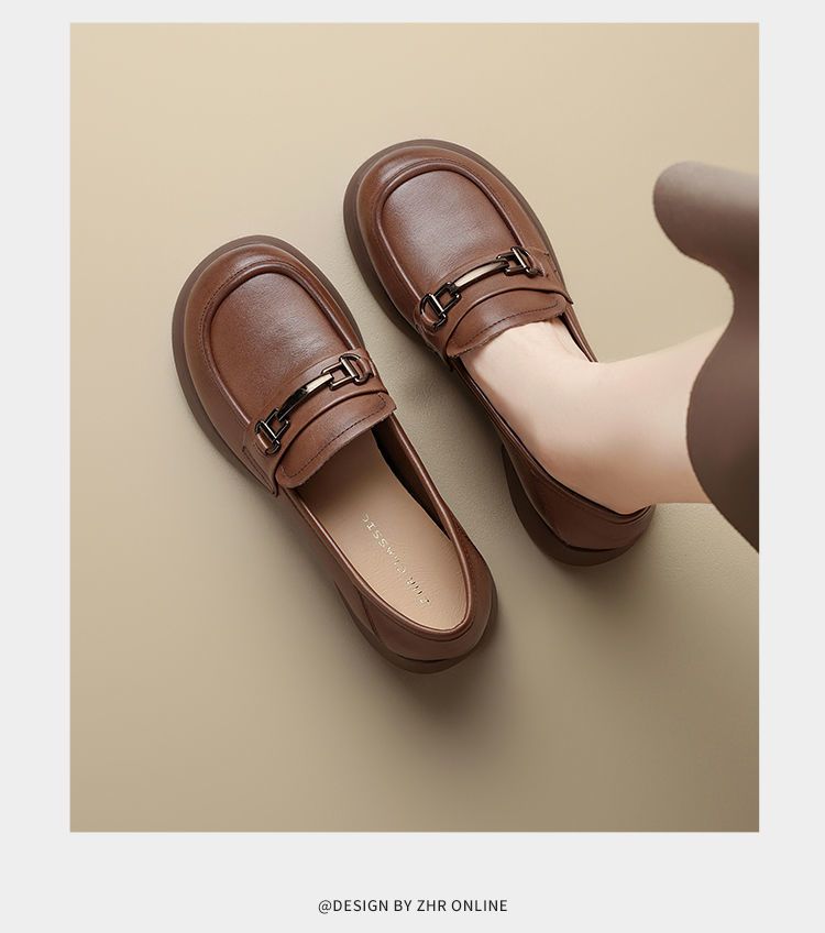 ZHR则则头层皮复古优雅乐福鞋女鞋2025新款金属衔扣百搭小皮鞋