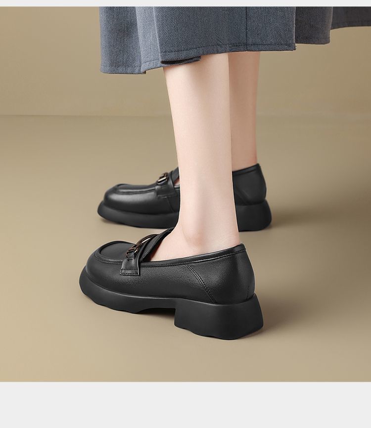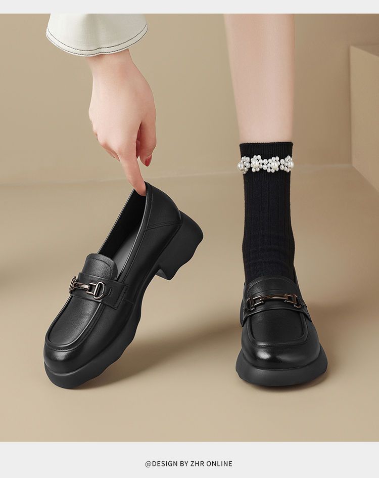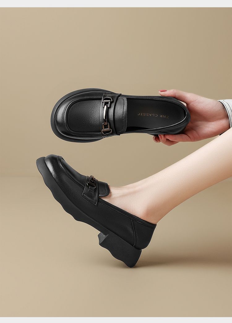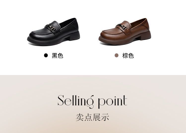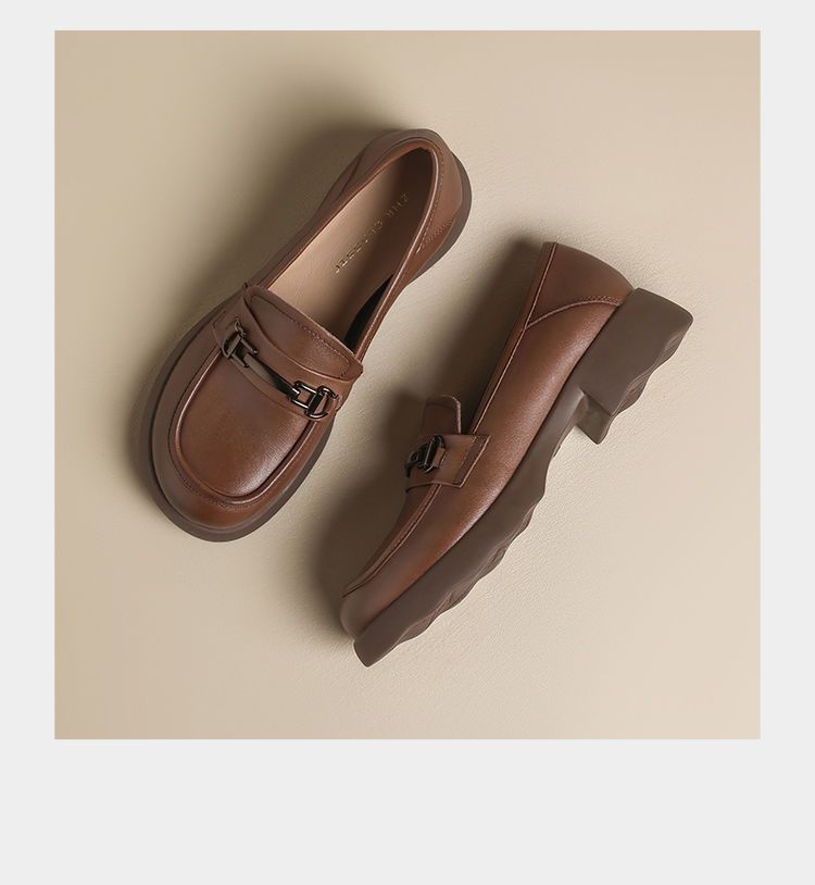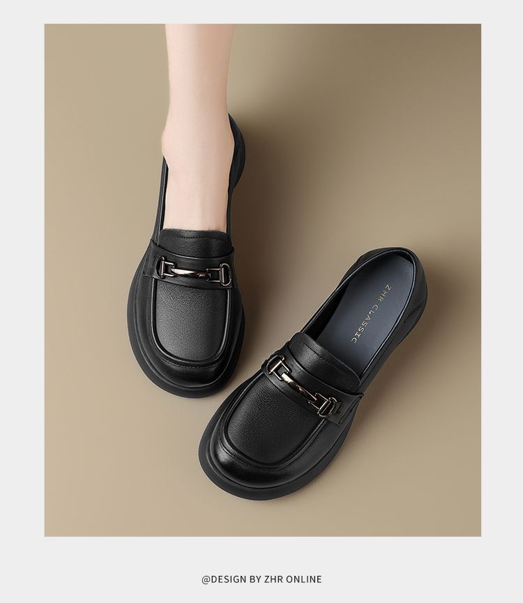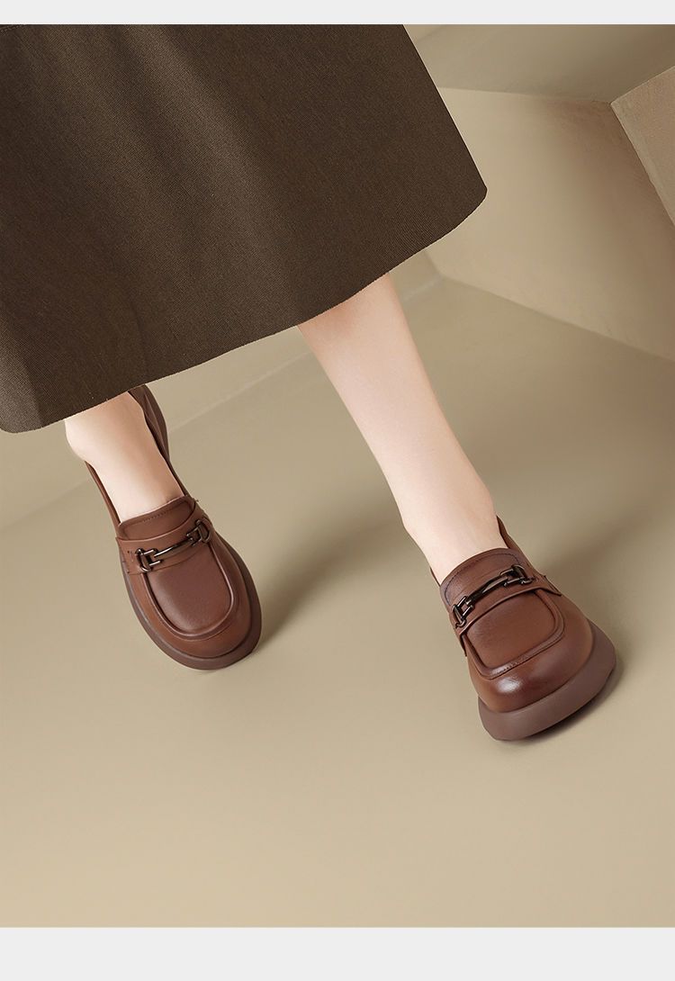 ZHR则则头层皮复古优雅乐福鞋女鞋2025新款金属衔扣百搭小皮鞋