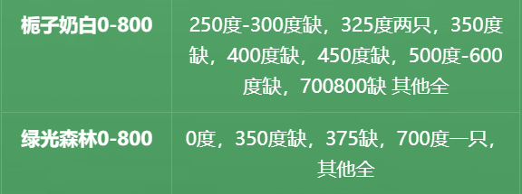 其余未提及的款式度数货全