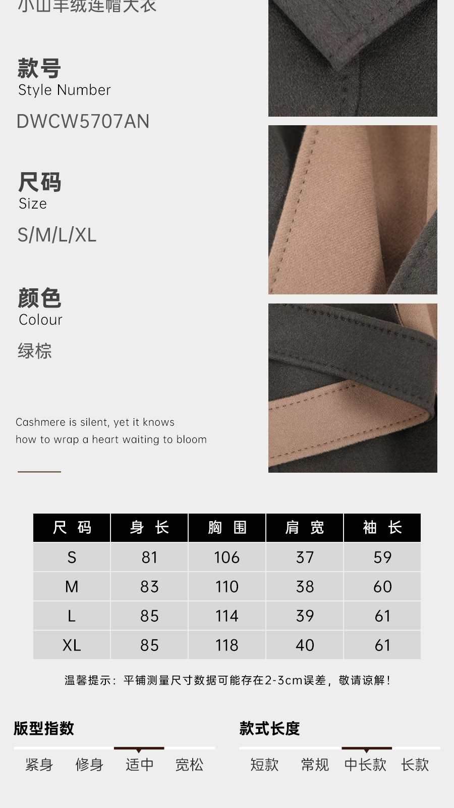 东黎 • 山羊绒女士保暖显瘦双面异色连帽中长大衣 5707