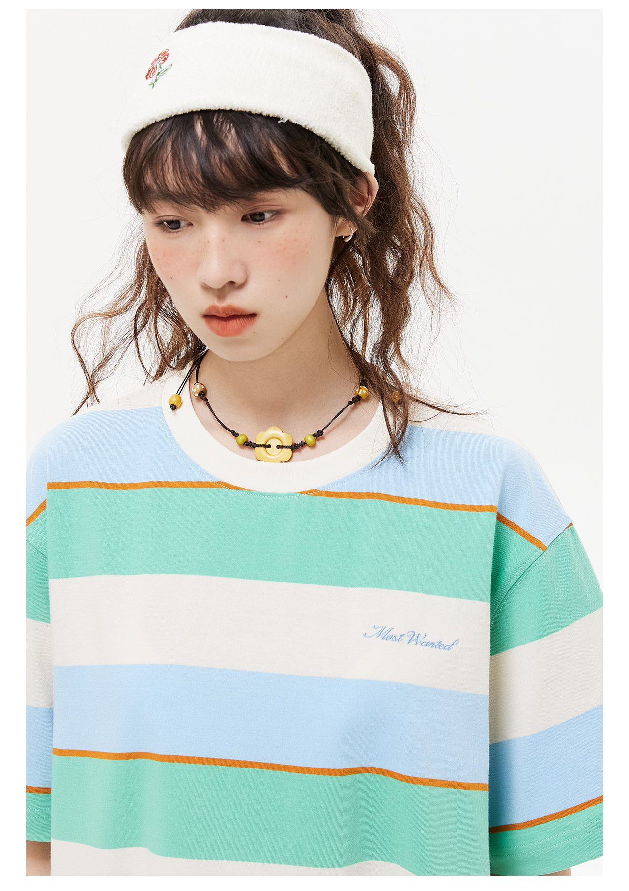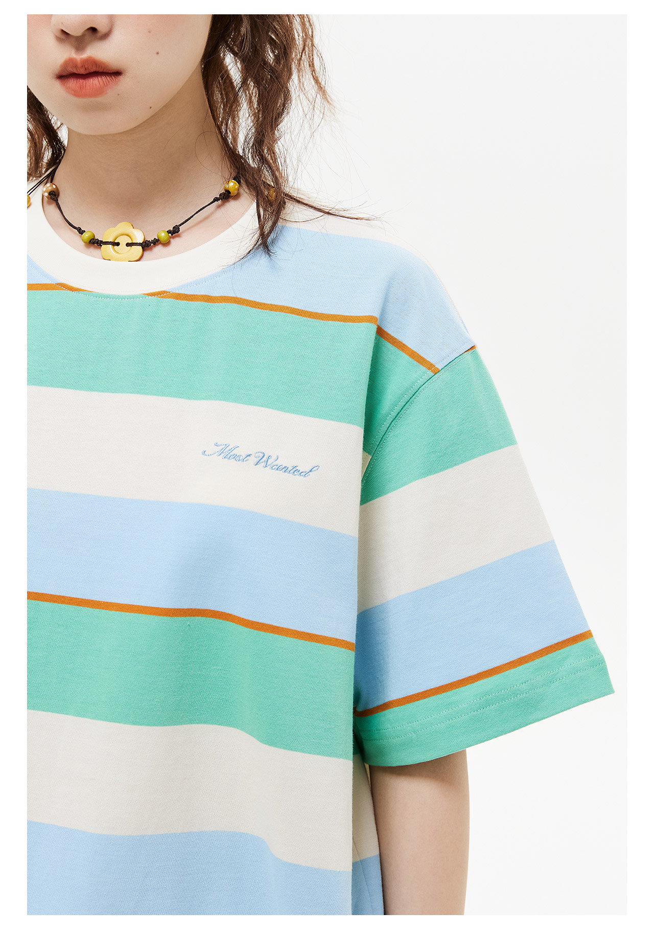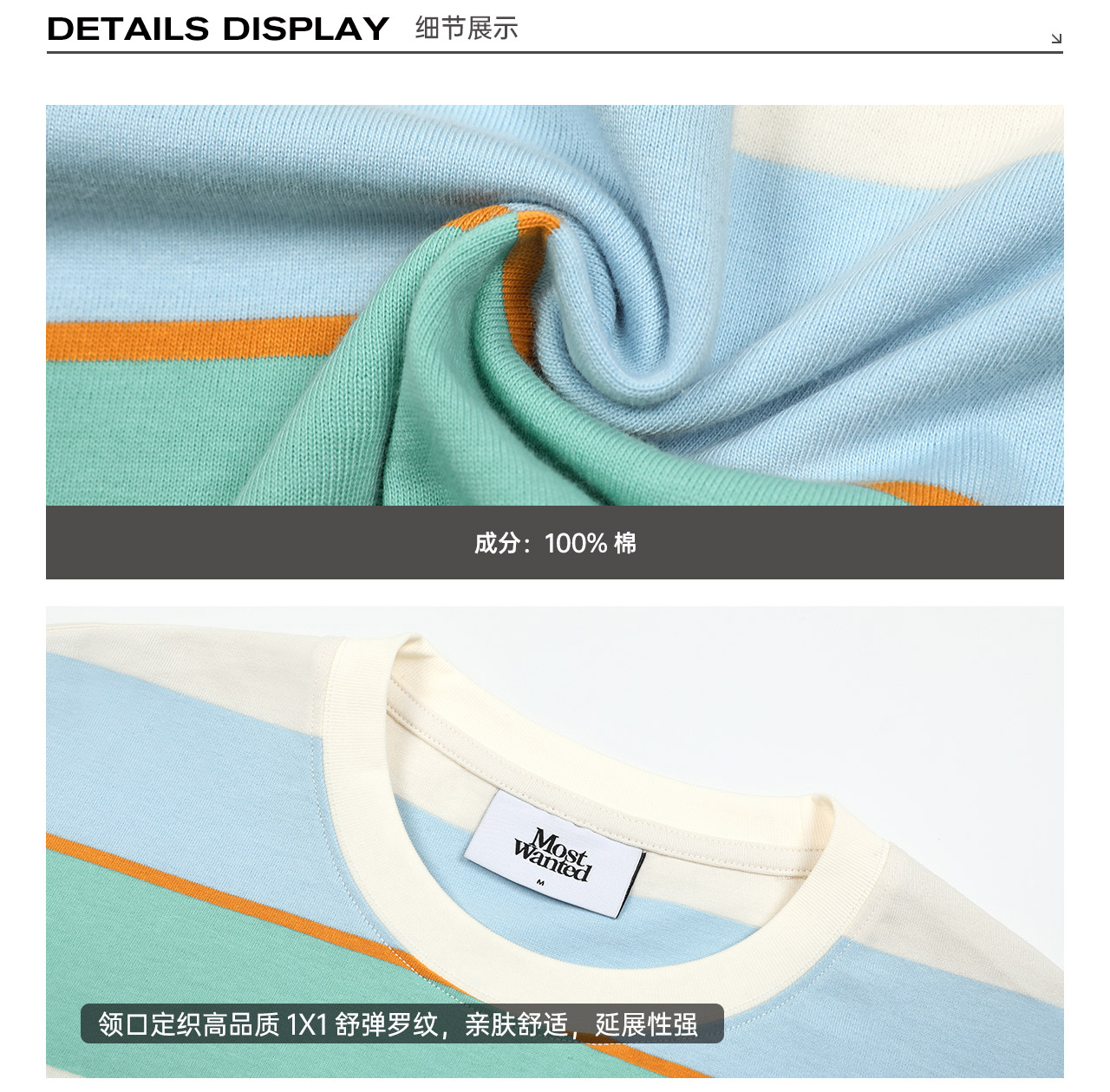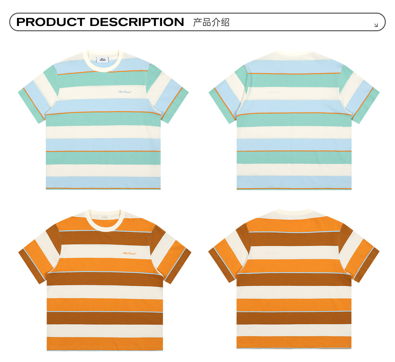 mostwantedlab彩虹/M2412207/夏威夷撞色条纹定织短袖T恤