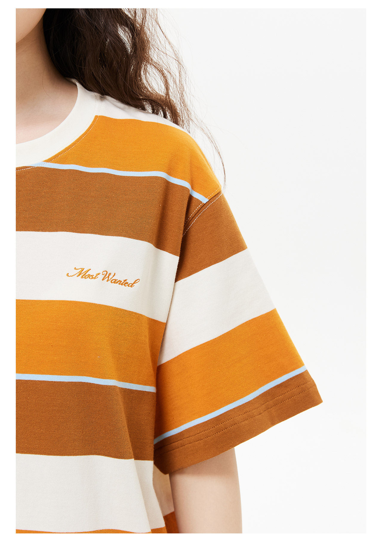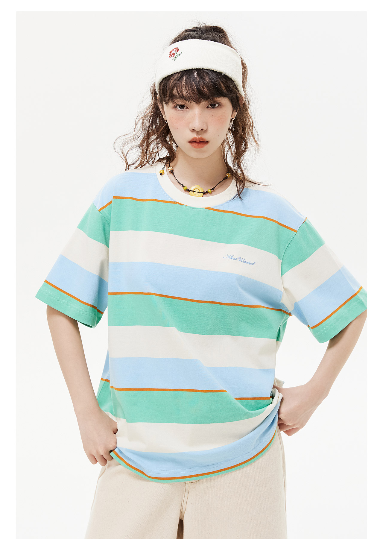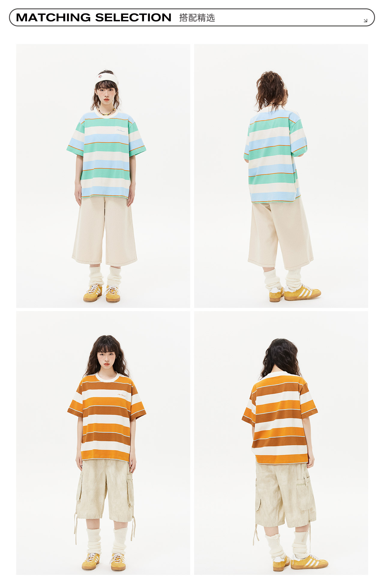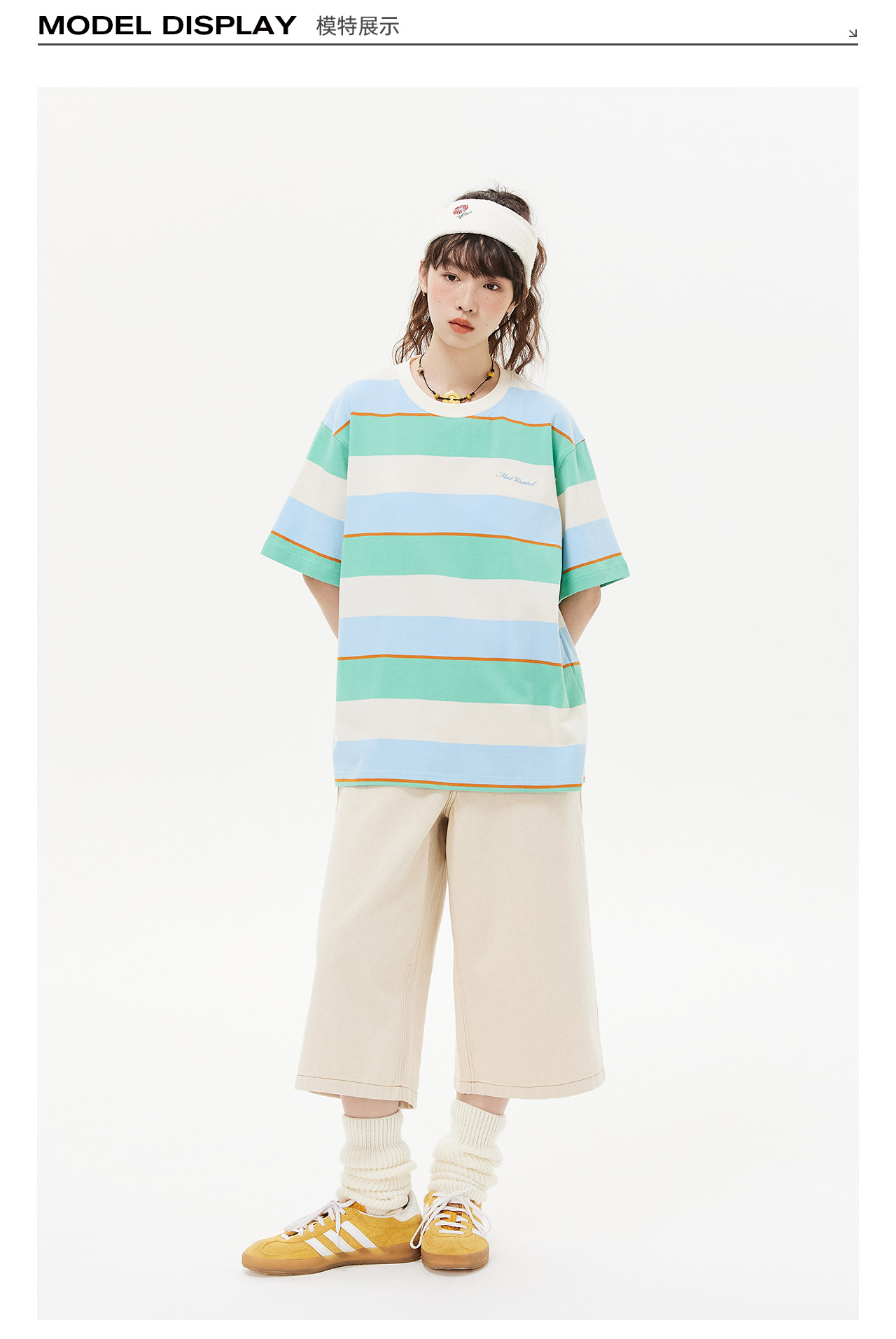 mostwantedlab彩虹/M2412207/夏威夷撞色条纹定织短袖T恤