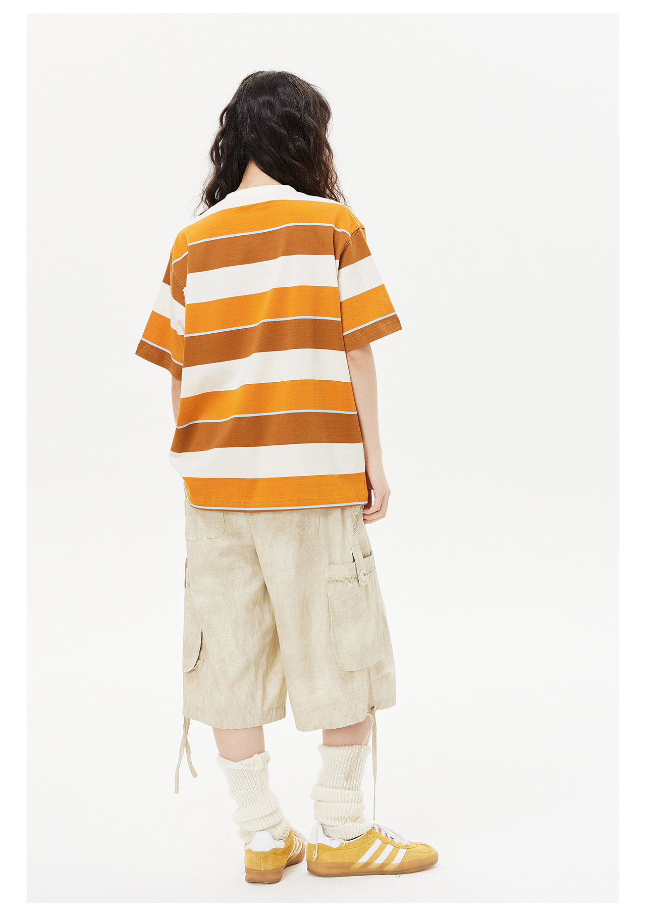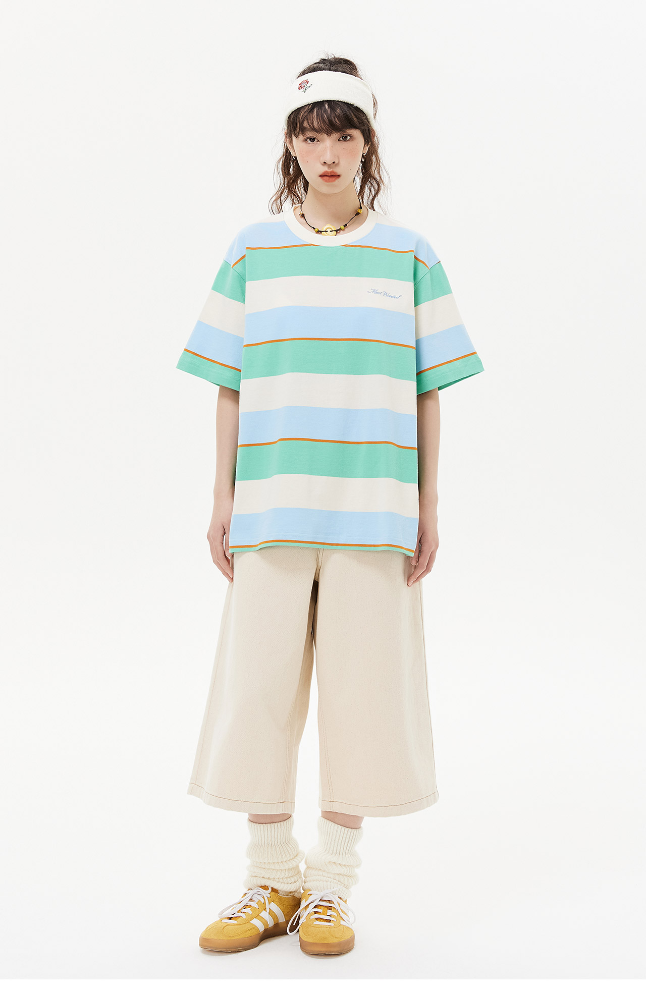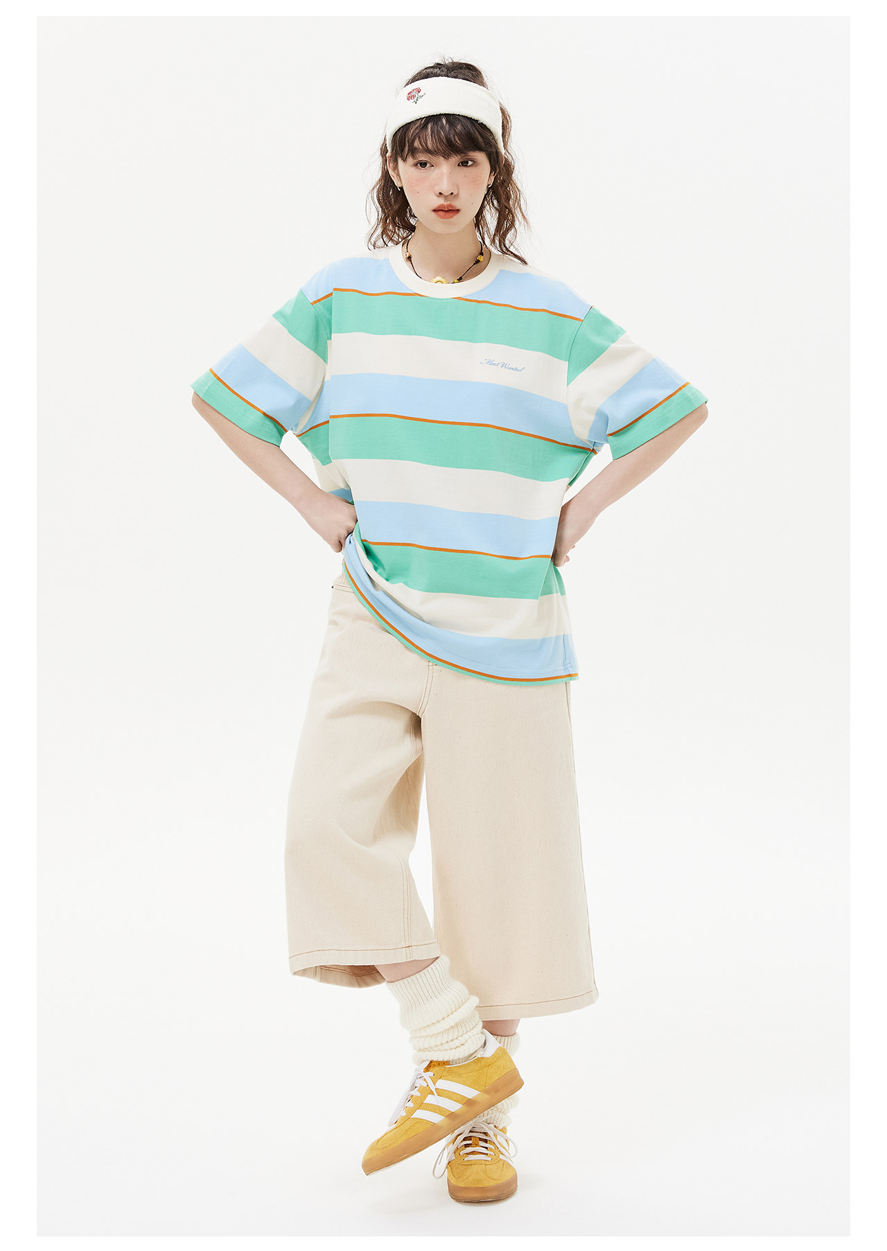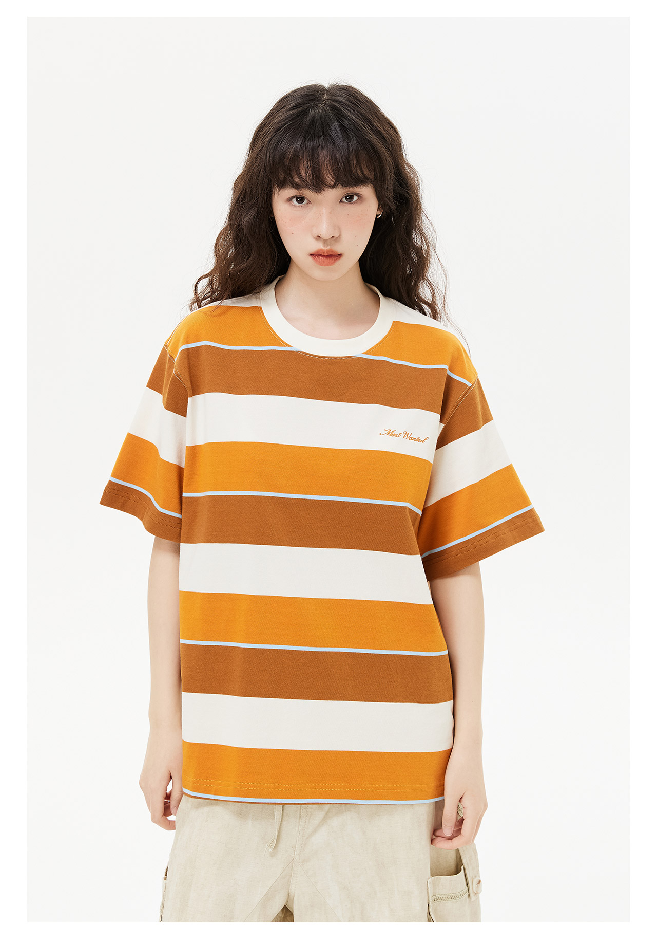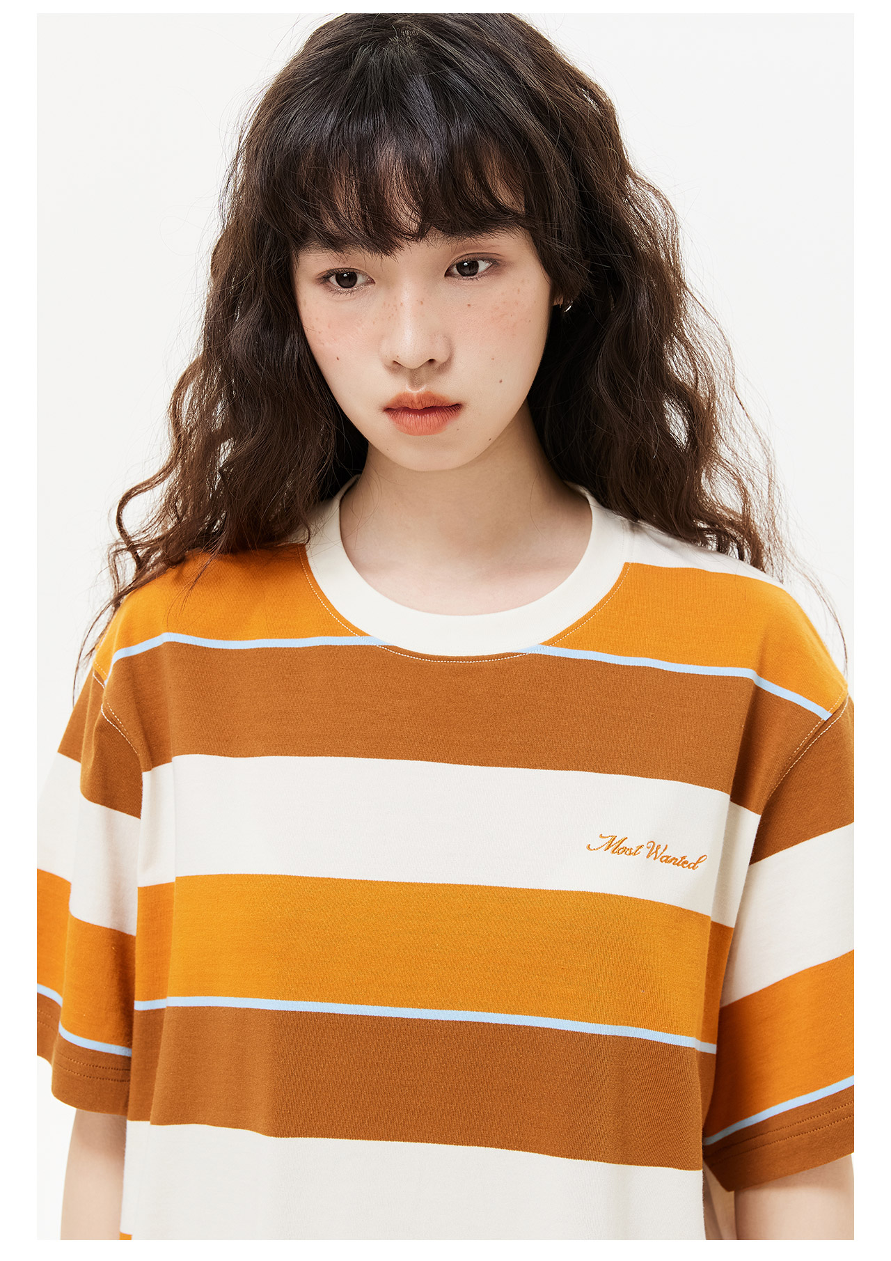 mostwantedlab彩虹/M2412207/夏威夷撞色条纹定织短袖T恤