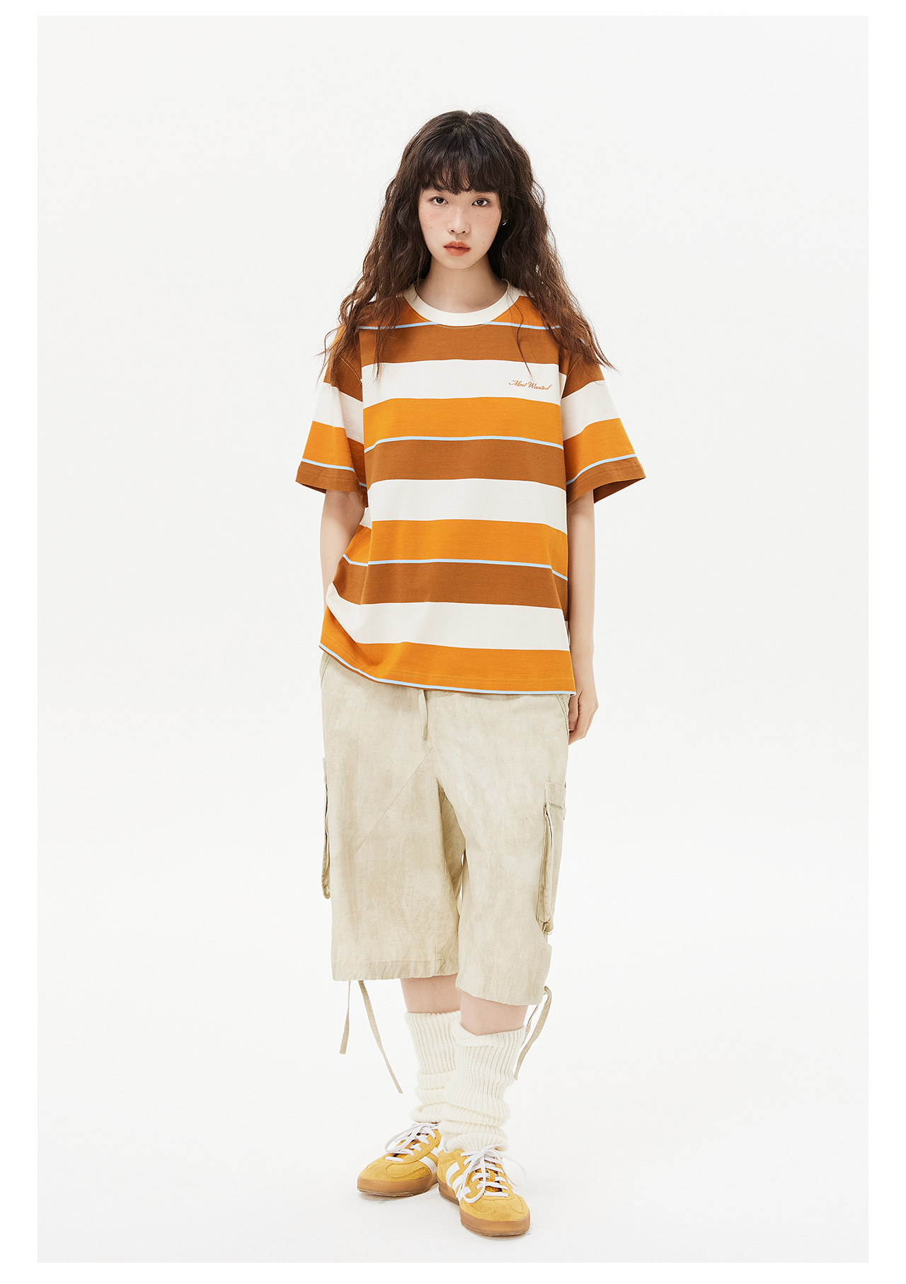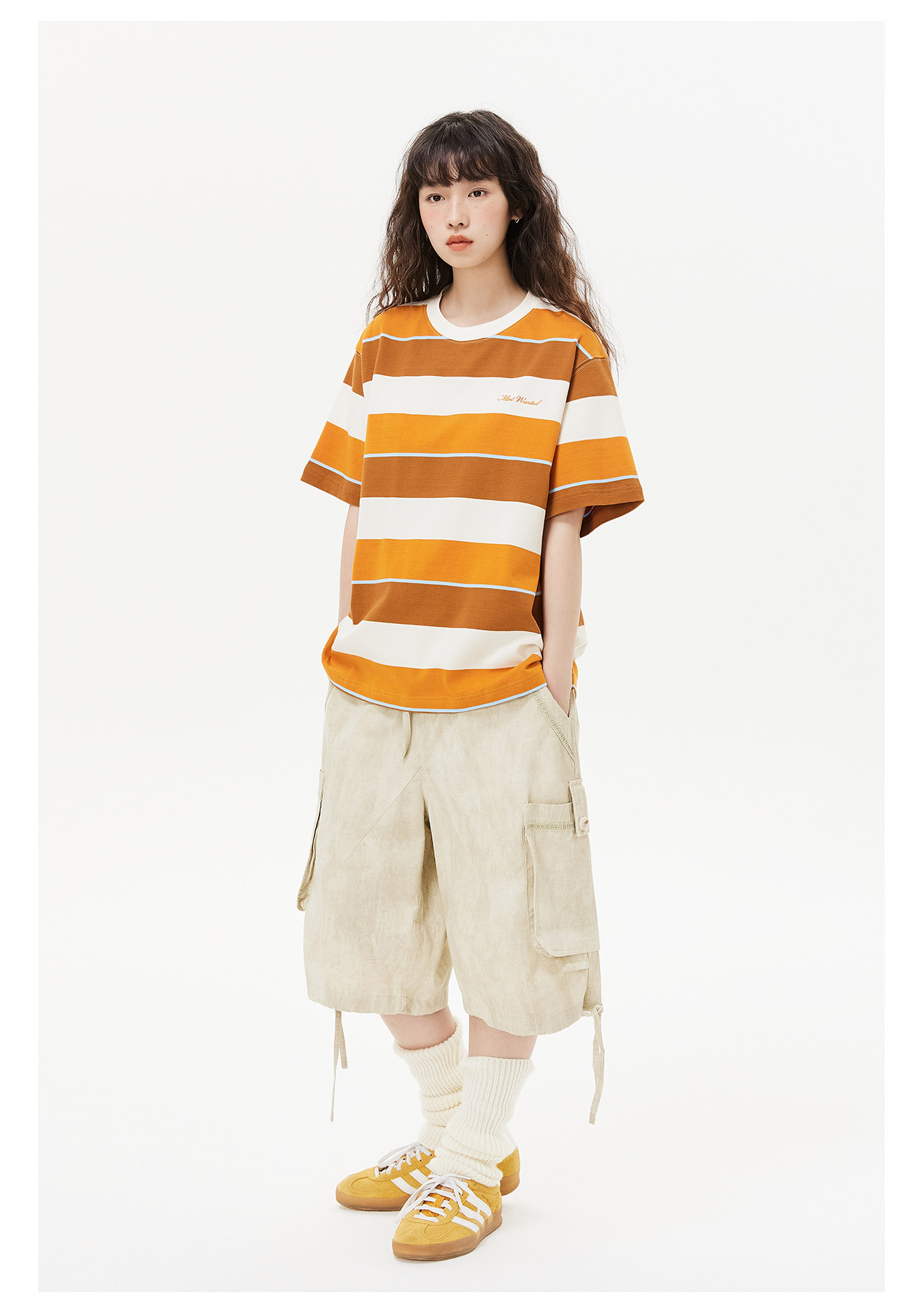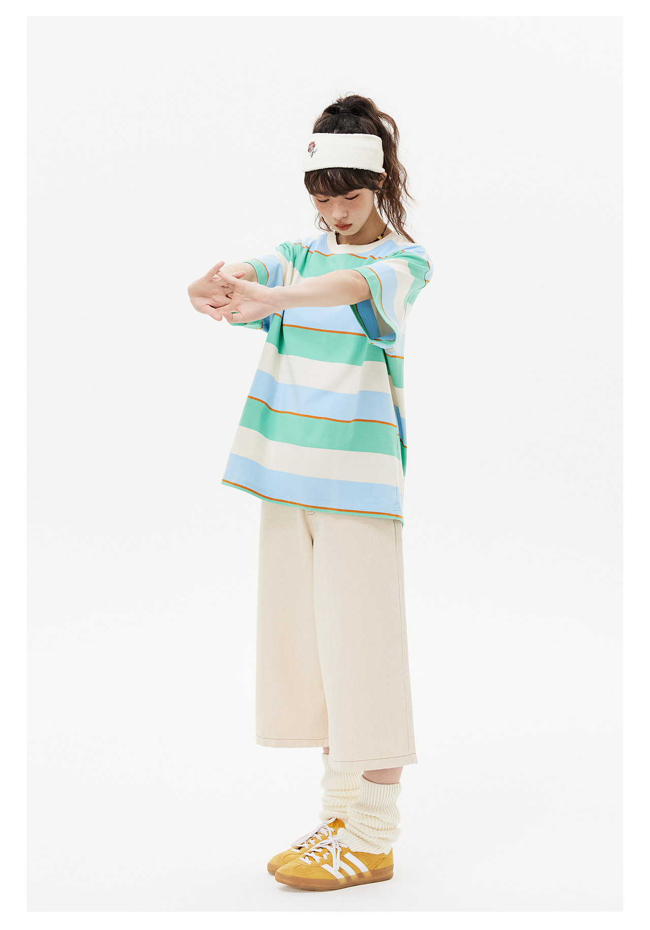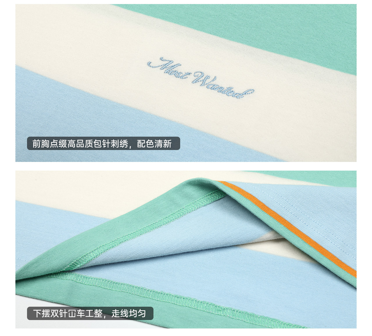 mostwantedlab彩虹/M2412207/夏威夷撞色条纹定织短袖T恤