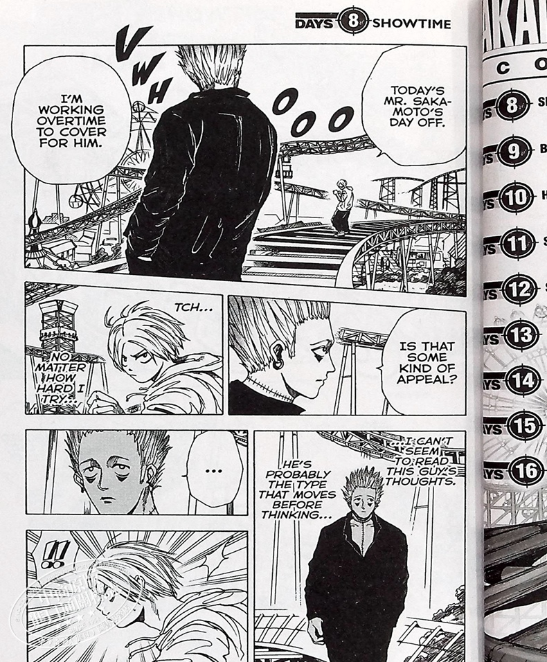 Shin faces off with a strange assassin who's targeting Mr. Sakamoto, but how will he manage against a foe whose thoughts are unreadable? Then, the Sakamoto gang does their best to enjoy a peaceful family outing at the amusement park, only to be rudely interrupted by a pair of menacing assassins. Can Mr. Sakamoto and his buddies take care of them without his family noticing?