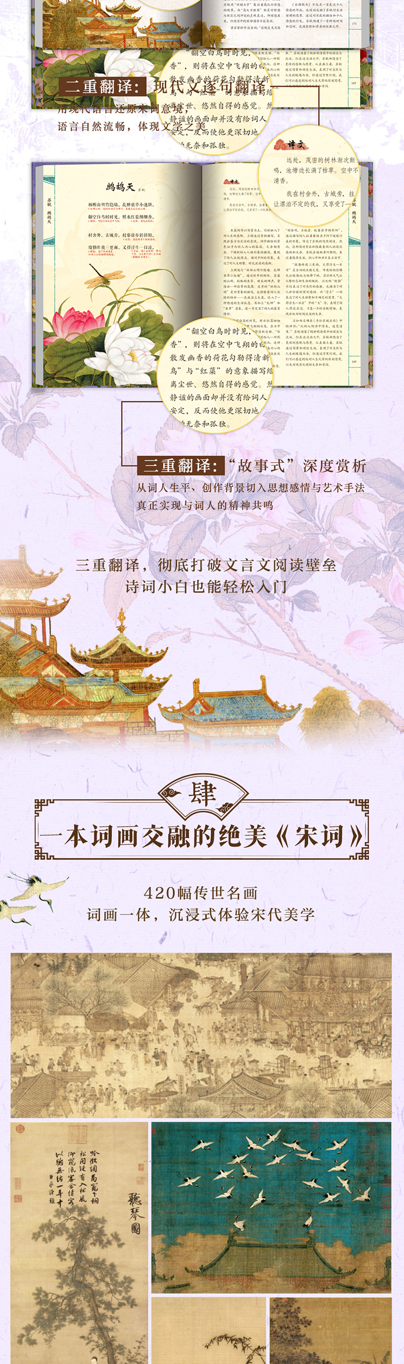 经典《宋词》2025震撼升级|烫金彩图典藏版全2册|全注全解全译,307首经典词作+420幅古画+23大美学专题+12类文学拓展,一次揽尽5000年东方美学