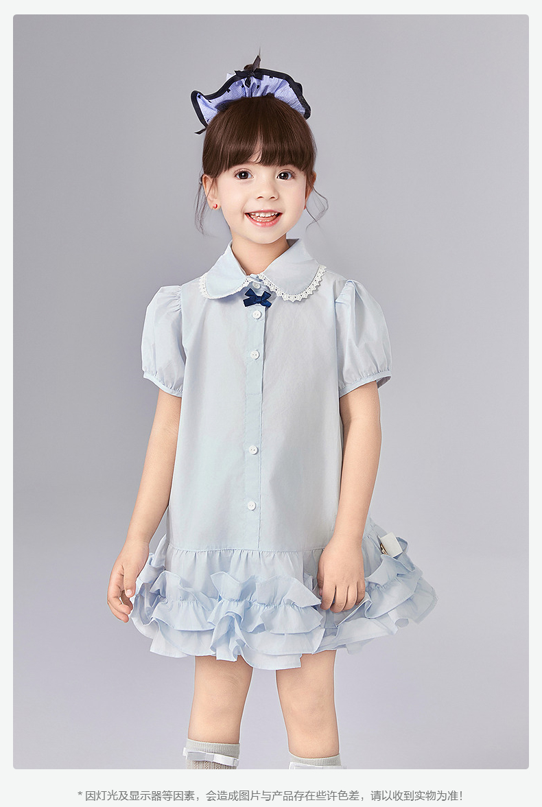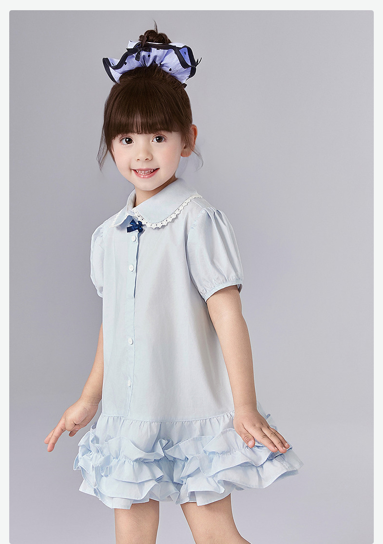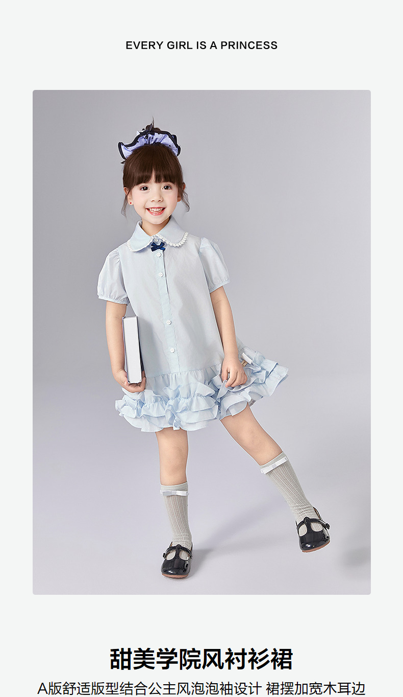 笛莎Deesha 童装女童连衣裙女童甜美学院风衬衫裙