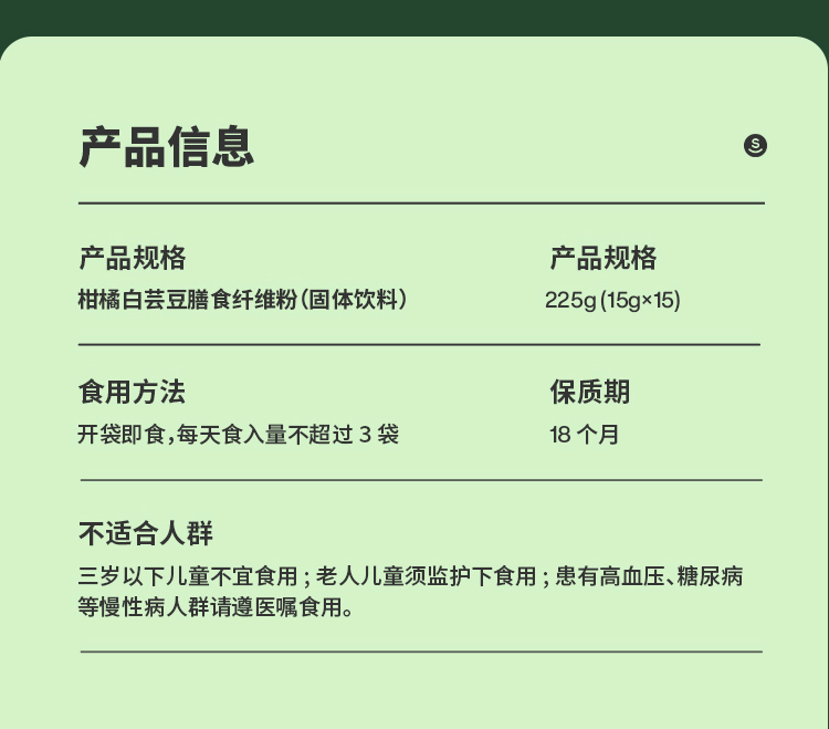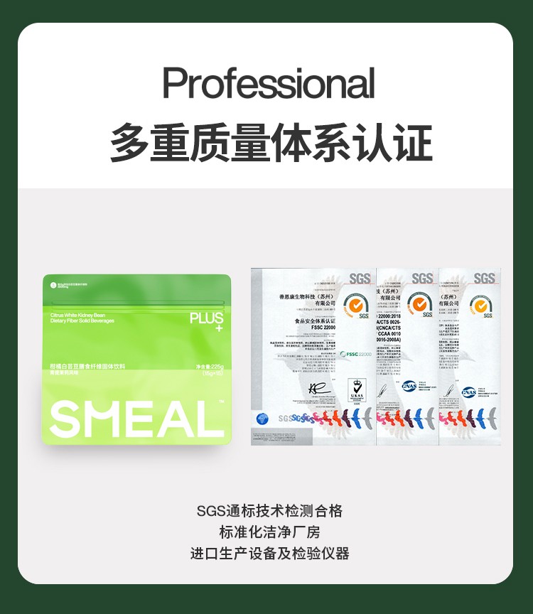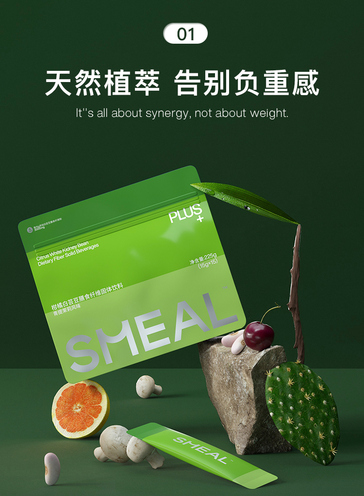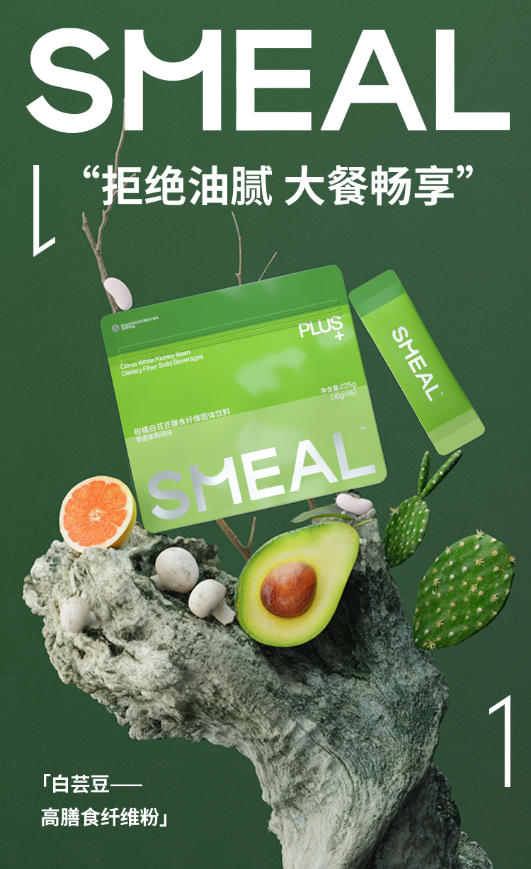 SMEAL 柑橘白芸豆膳食纤维固体饮料青提茉莉风味 225g(15g*15包)