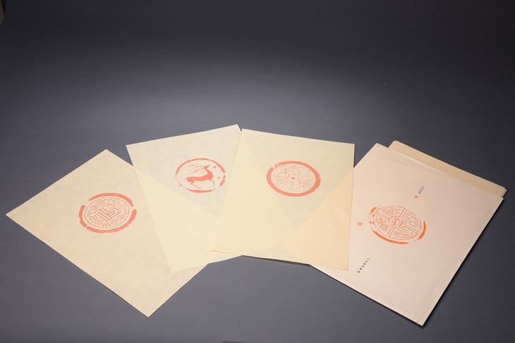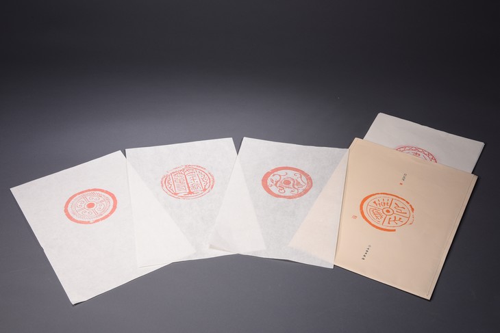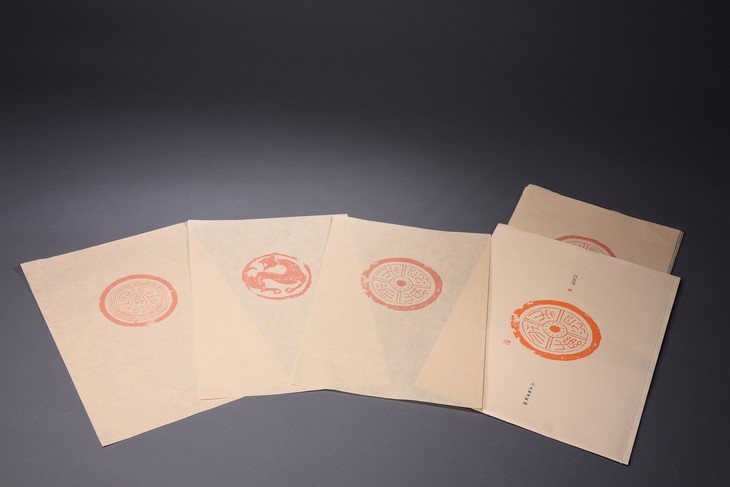 不同于传统的“北平信笺”“十竹斋笺谱”,了如指掌红瓦笺采用秦汉时期的瓦当拓片,图片来源于著名金石学家王懿荣所藏印《秦汉瓦当牛拓本集》。