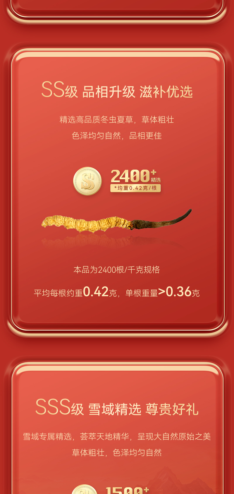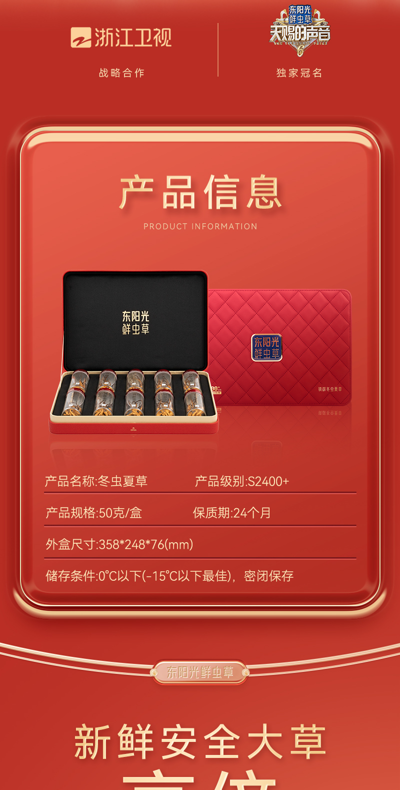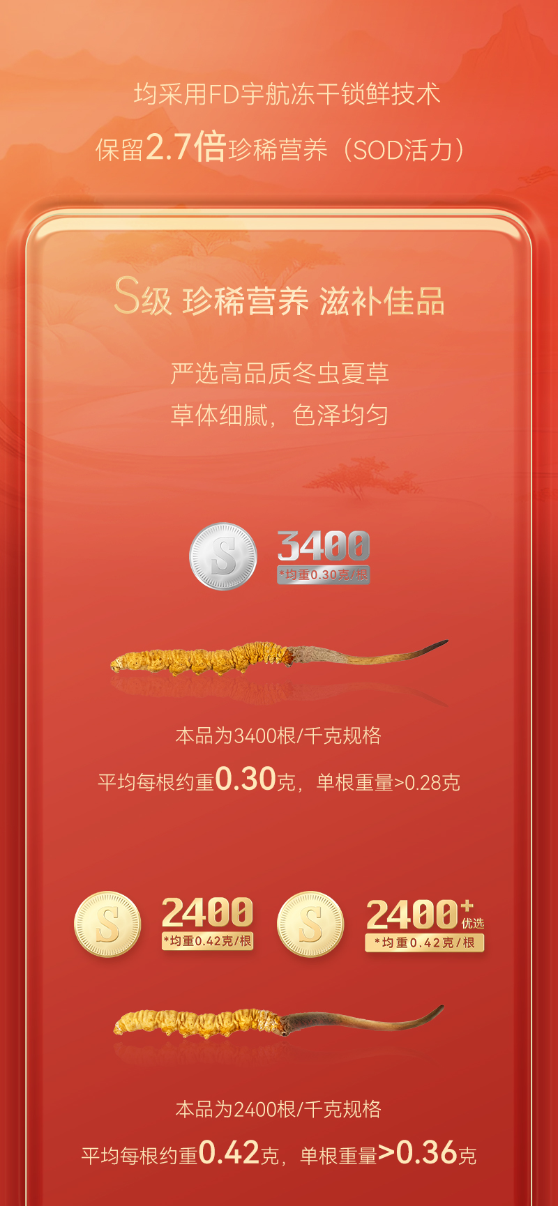 东阳光冬虫夏草 锁鲜虫草(S2400+)50克装 2-3根/克【锁鲜虫草 滋补礼盒】