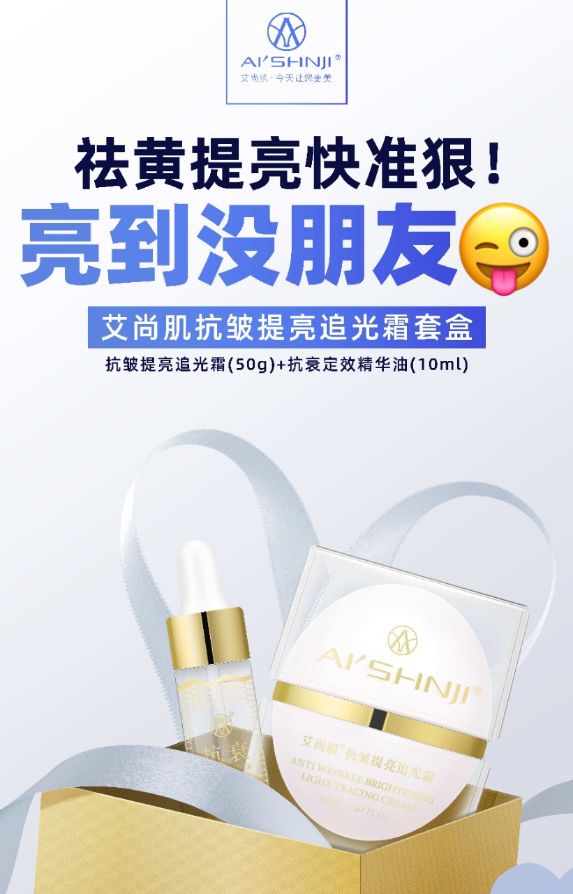 艾尚肌抗皱提亮追光霜套盒 抗皱提亮追光素颜霜(50g)+抗衰定效精华油(10ml无水配方)