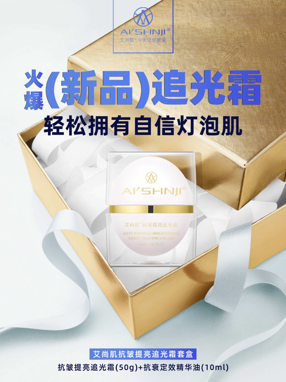 抗皱提亮追光霜 : 精华抗皱透亮,一抹亮肤美颜,细嫩焕亮肌肤,提升肌肤细腻度和光泽度,水润柔美,有效焕靓肌肤,见证肌肤高光时刻,光泽透亮,美丽面部肌肤。