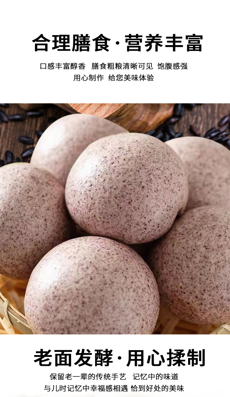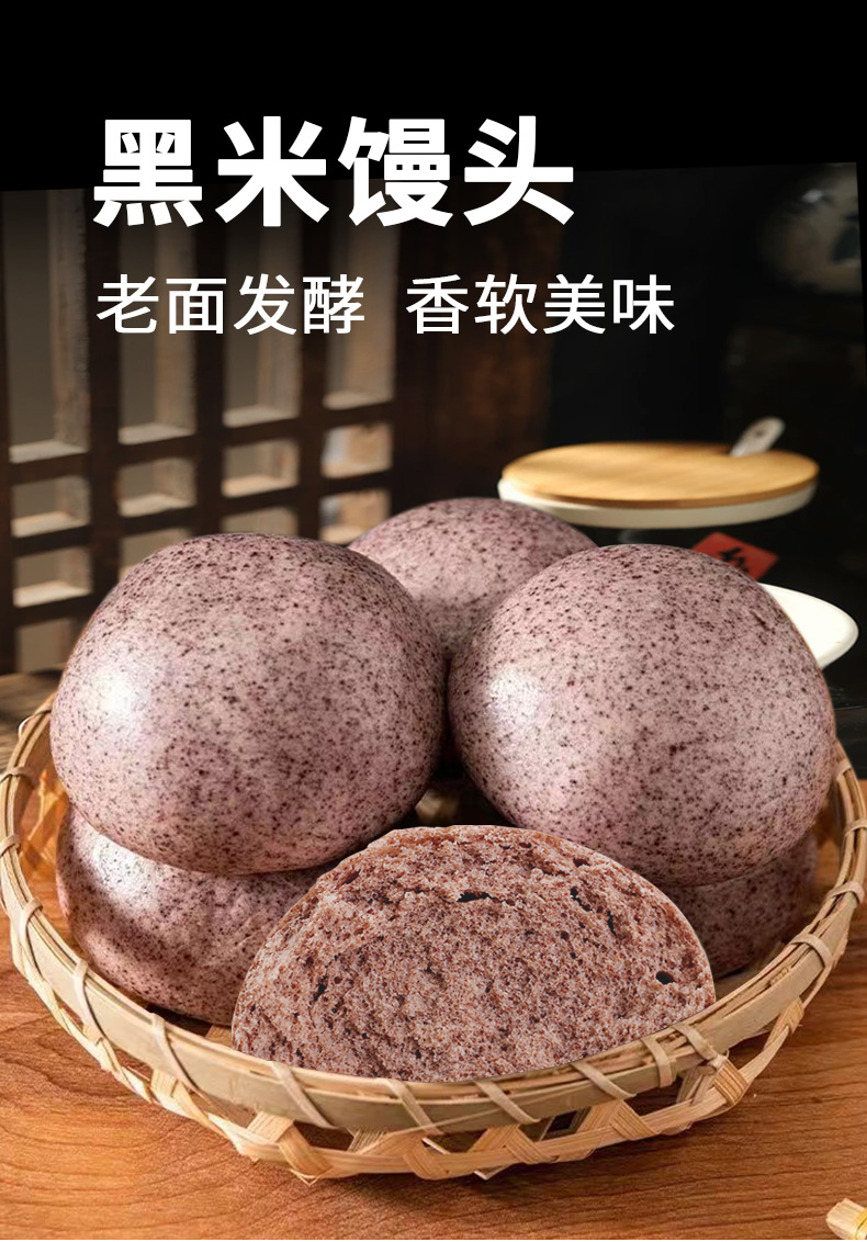 富世康黑米馒头600克/袋 早餐食品杂粮粗粮 速食半成品面点