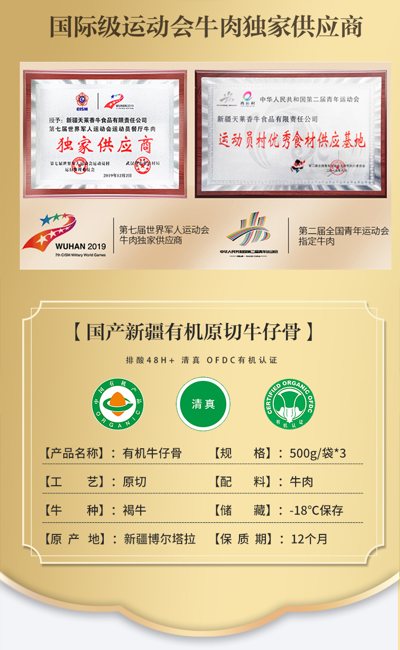 【顺丰发货】国产有机天莱香牛冷冻牛仔骨三斤