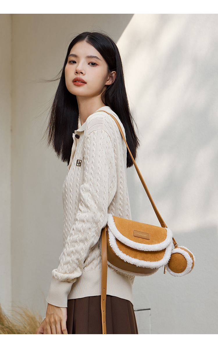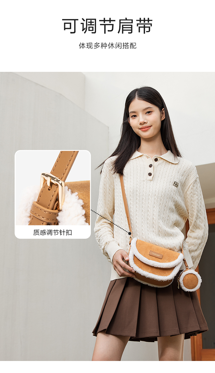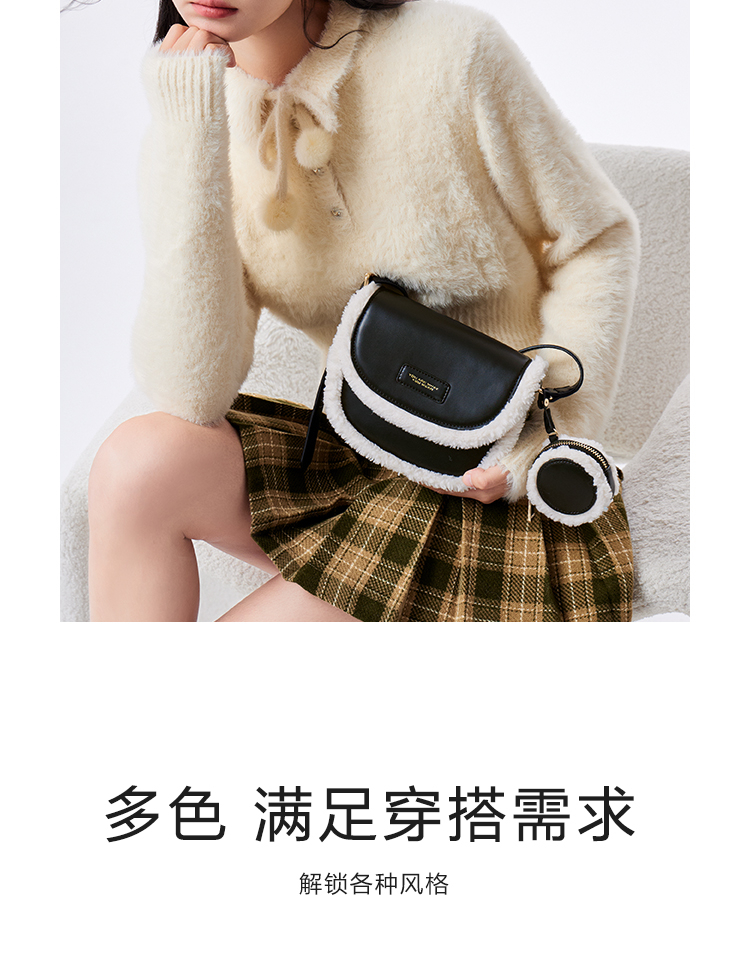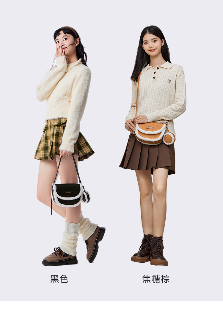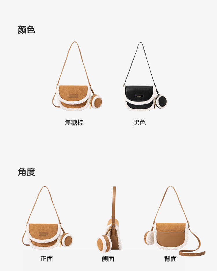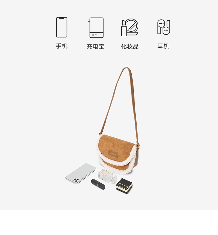 森马包包马鞍包女新款质感单肩包时尚仿麂皮斜挎包潮牌背包