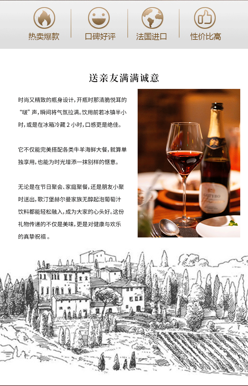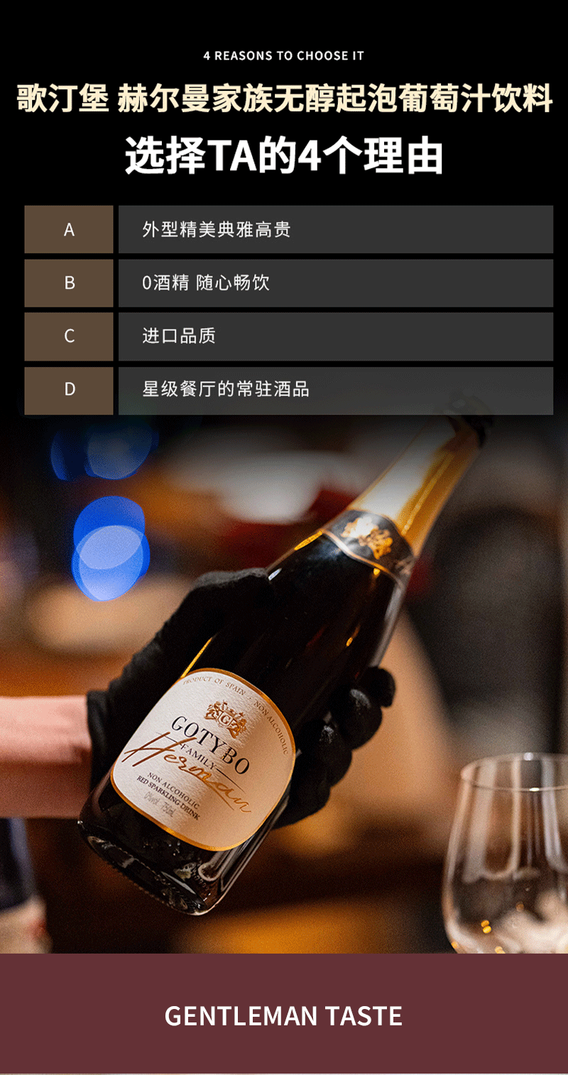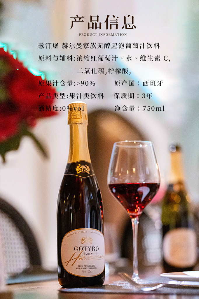 歌汀堡 赫尔曼家族无醇起泡葡萄汁饮料 葡萄酒 西班牙百年名庄 0%vol酒精 >90%果汁含量 小孩老人都能喝