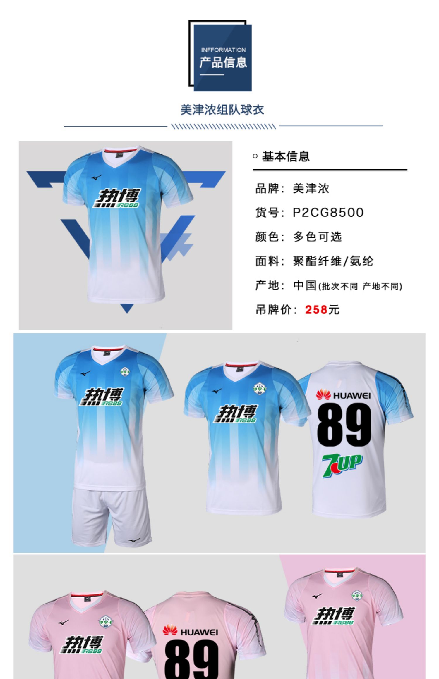 【3套以上,每满200减20】小李子专柜正品Mizuno美津浓足球运动组队球衣定制短袖足球服套装