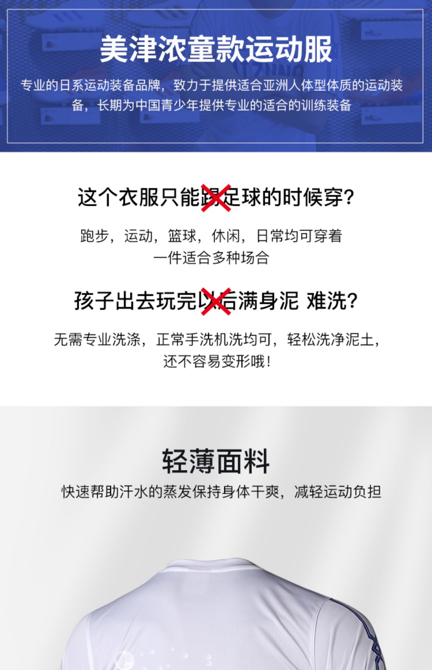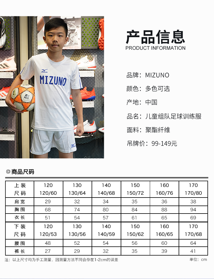 【3套以上,每满200减20】mizuno美津浓青少年足球训练服组队服定制童款球衣