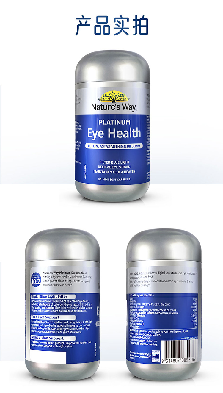 【N】澳萃维(Nature'sWay)成人叶黄素软胶囊30粒/瓶(27年3月)