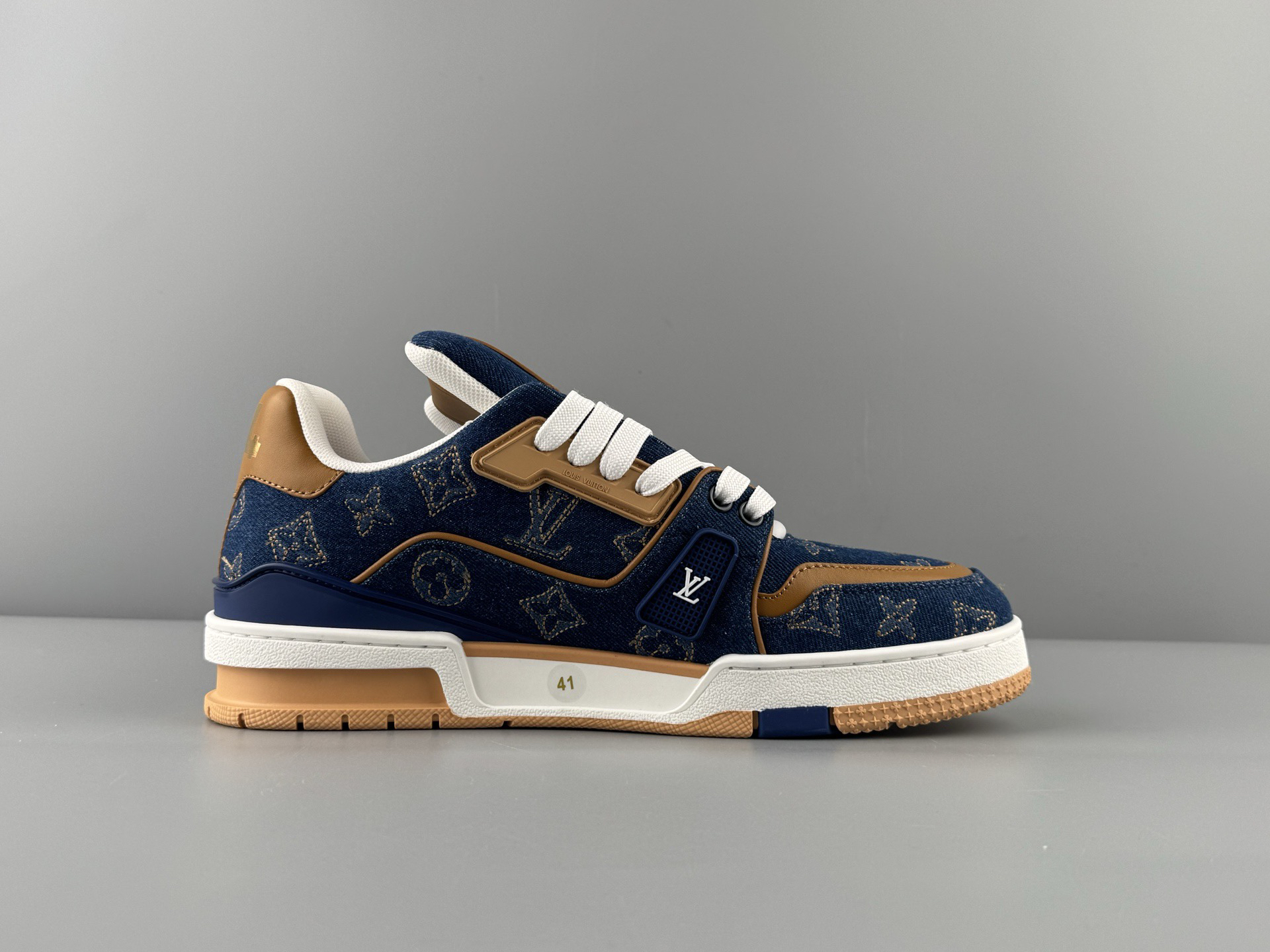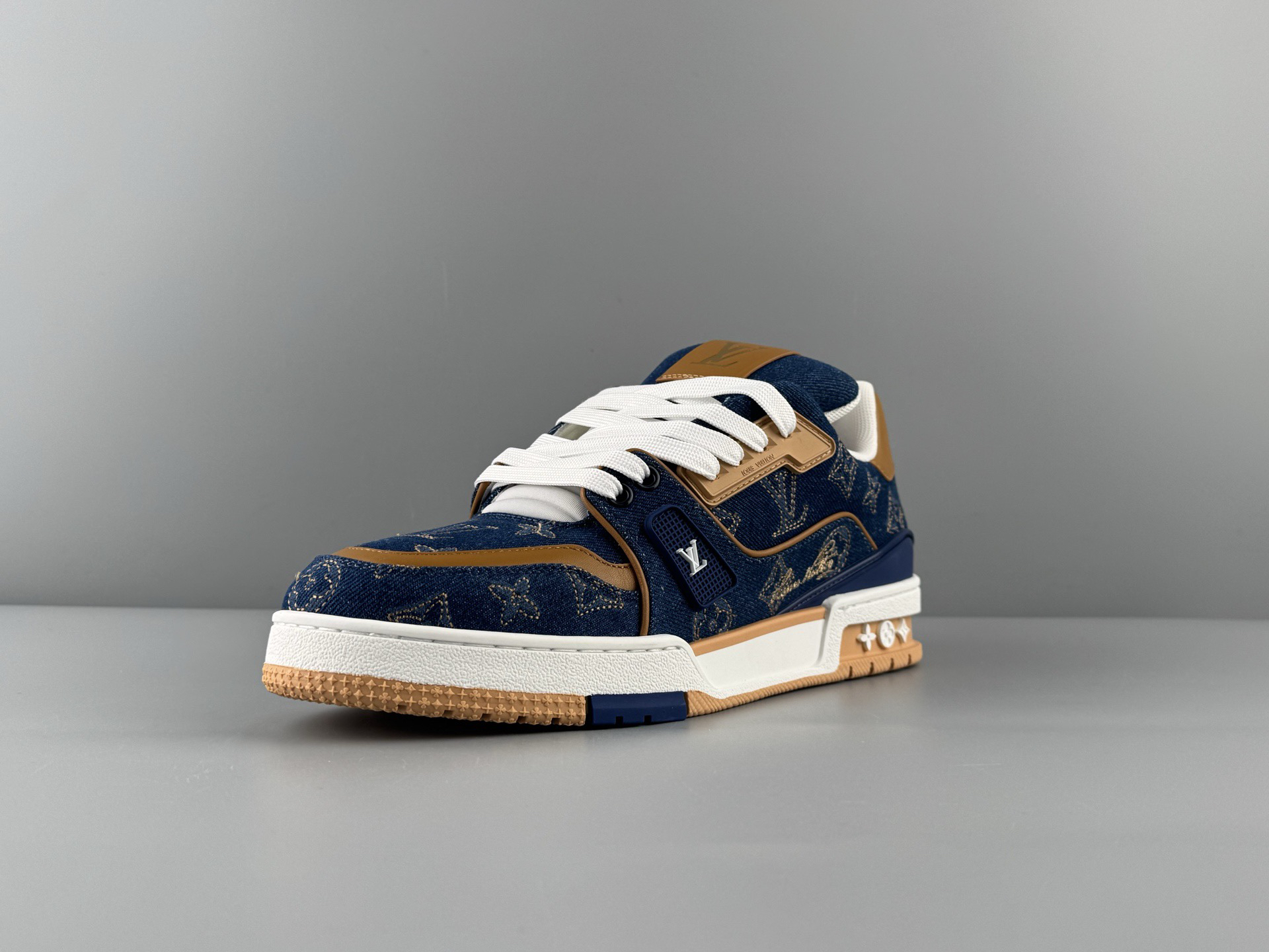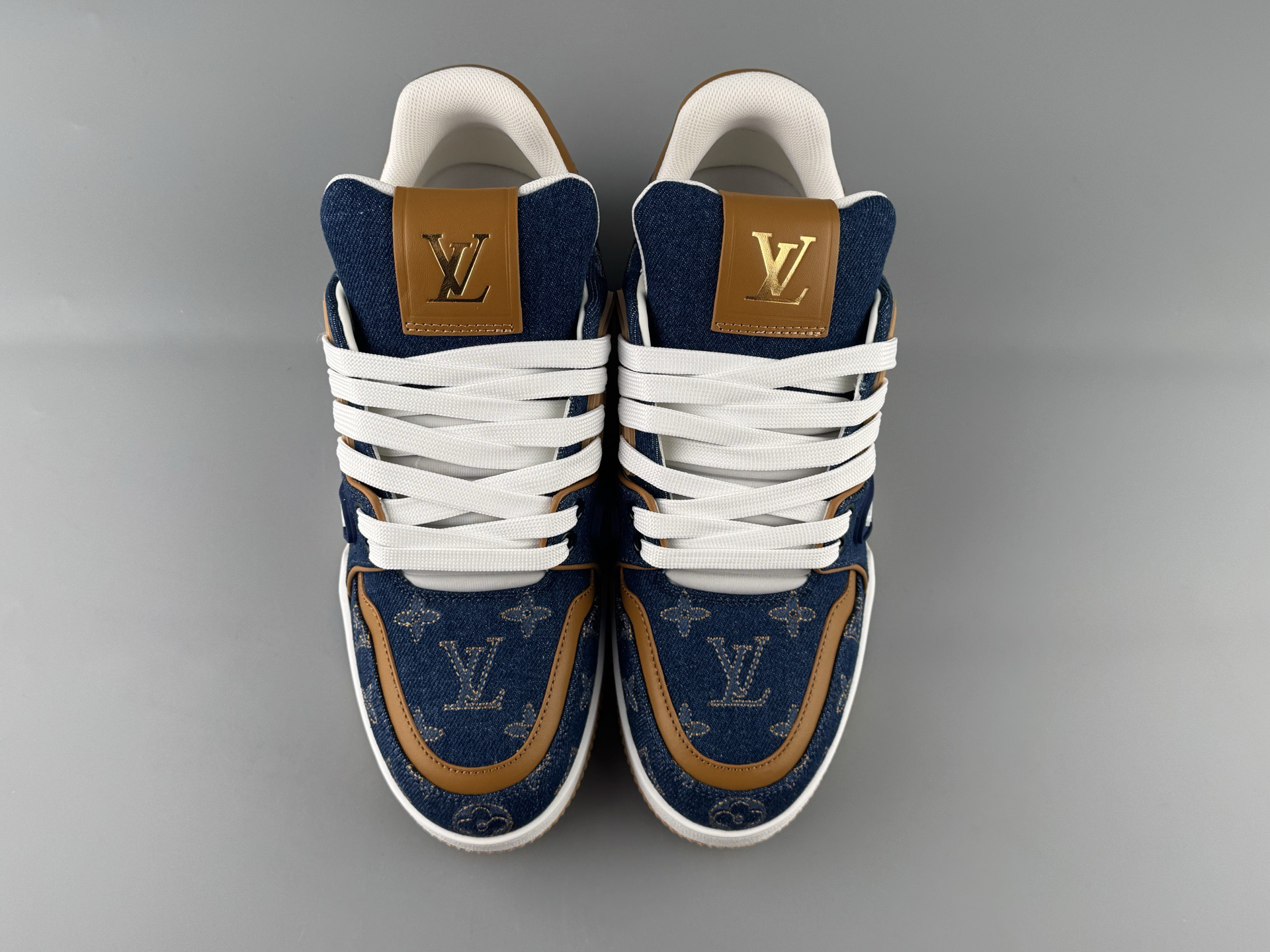 春季特惠💰720 LV鞋子 男女同款 纯原版本 # 驴牌 Trainer 新配色 牛仔布刺绣款 原厂大底生产 出入专柜无压力