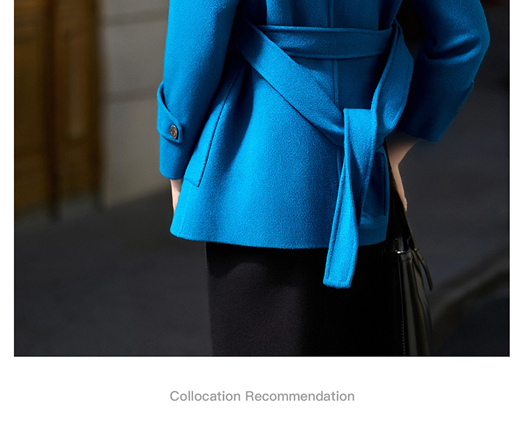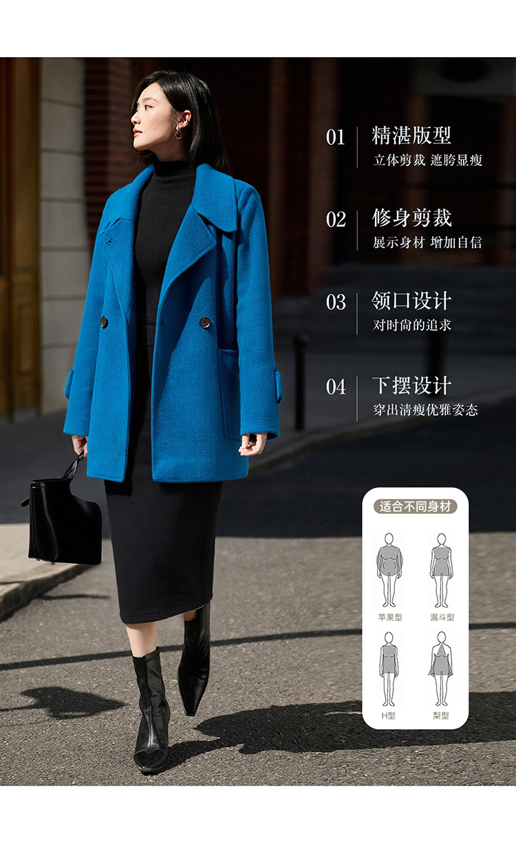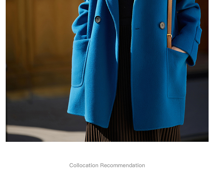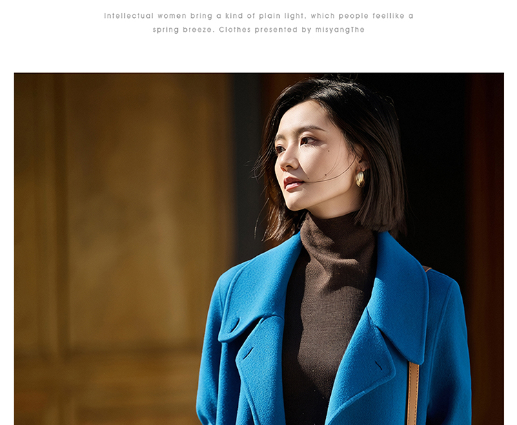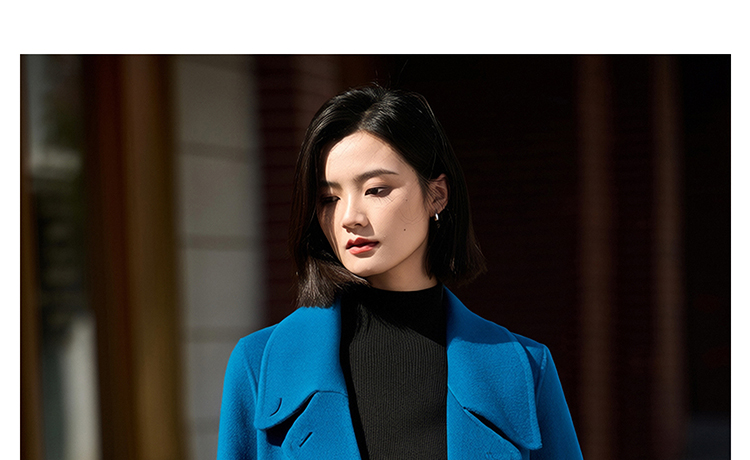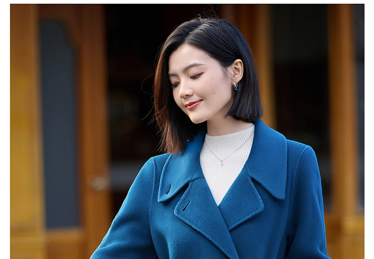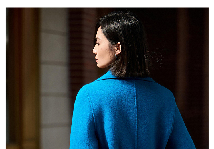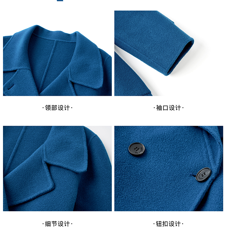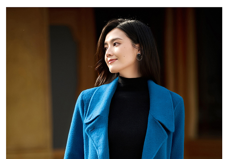 轻暖柔软克莱因蓝大衣 比纯羊毛更柔软的高支天丝羊毛 领口穿法多样 小个子可穿 米思阳2025冬季时尚优雅羊毛双面呢大衣知性毛呢外套女5680