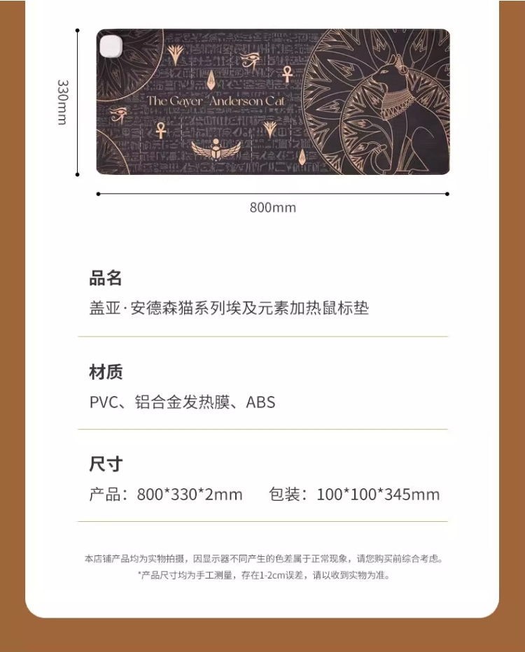 大英博物馆盖亚·安德森猫系列 埃及元素加热鼠标垫游戏桌垫