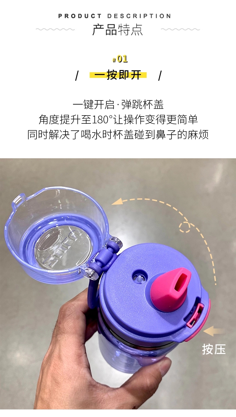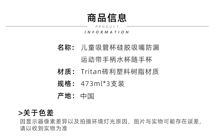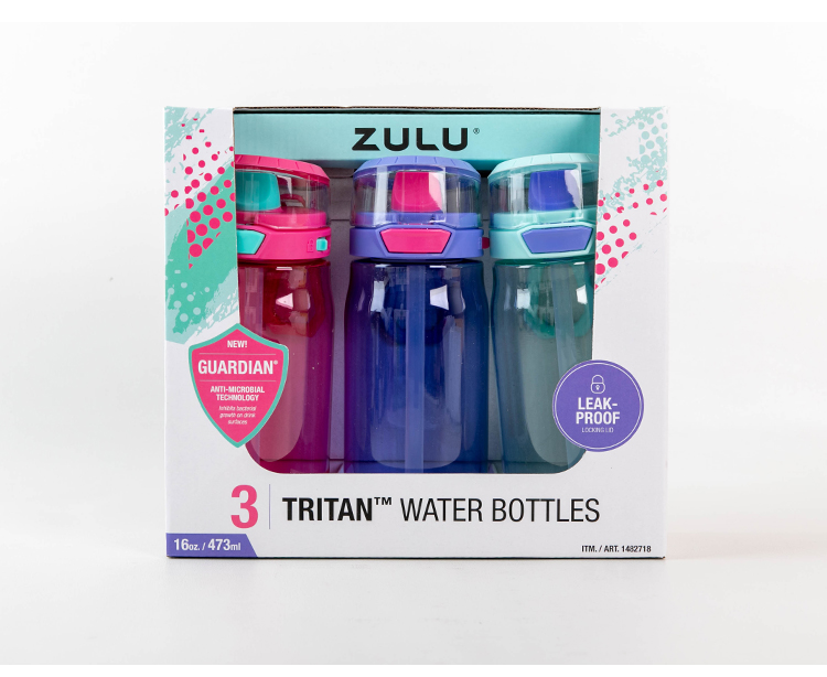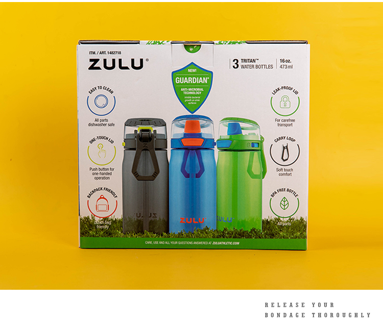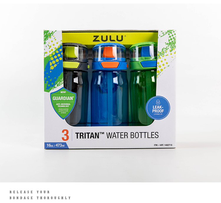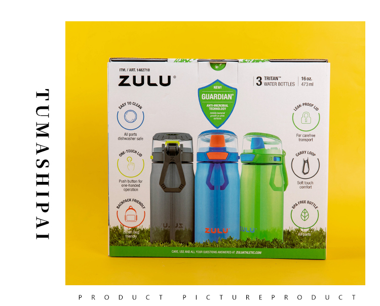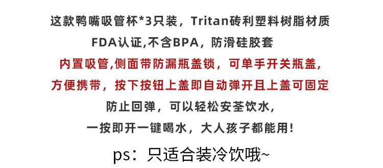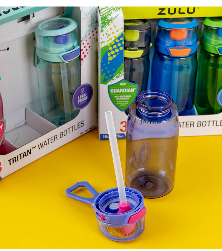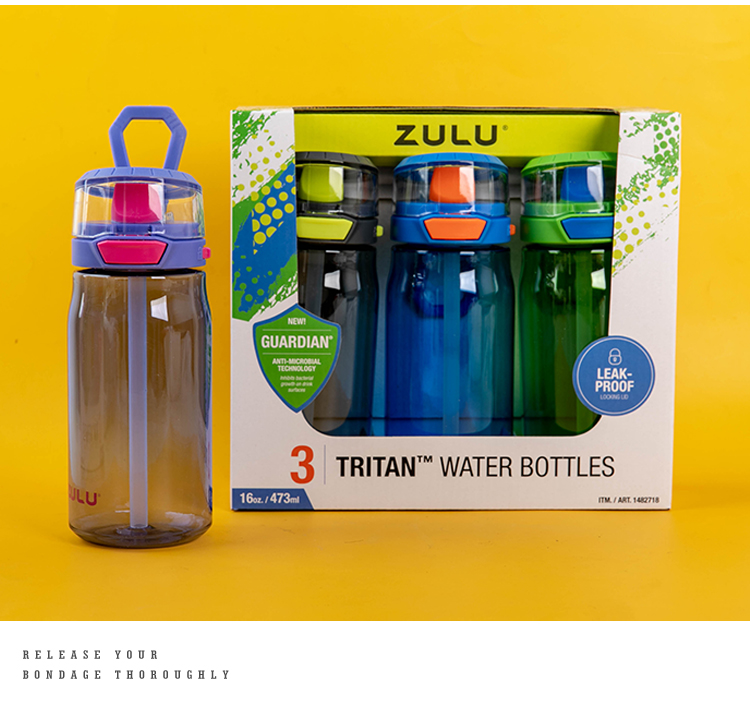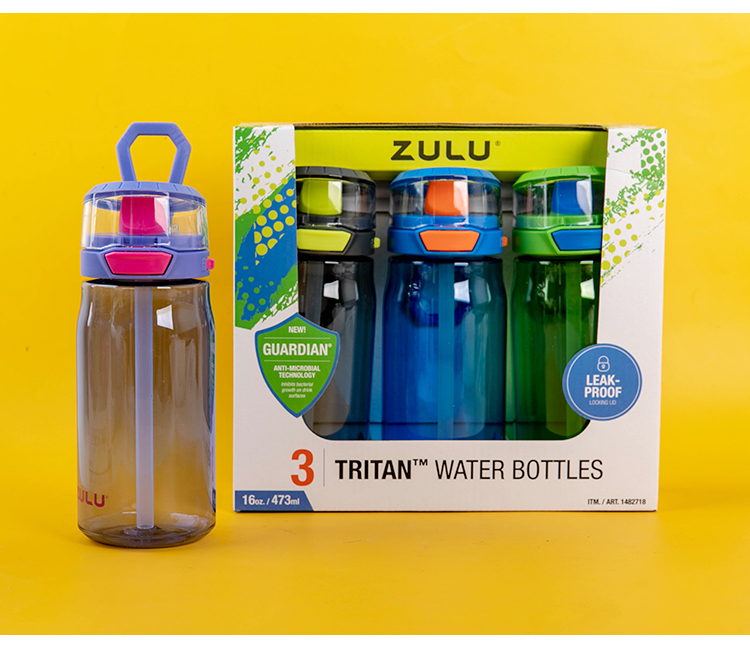 ZULU儿童鸭嘴吸管杯运动塑料水杯473ml*3只装 2个颜色 #天津仓