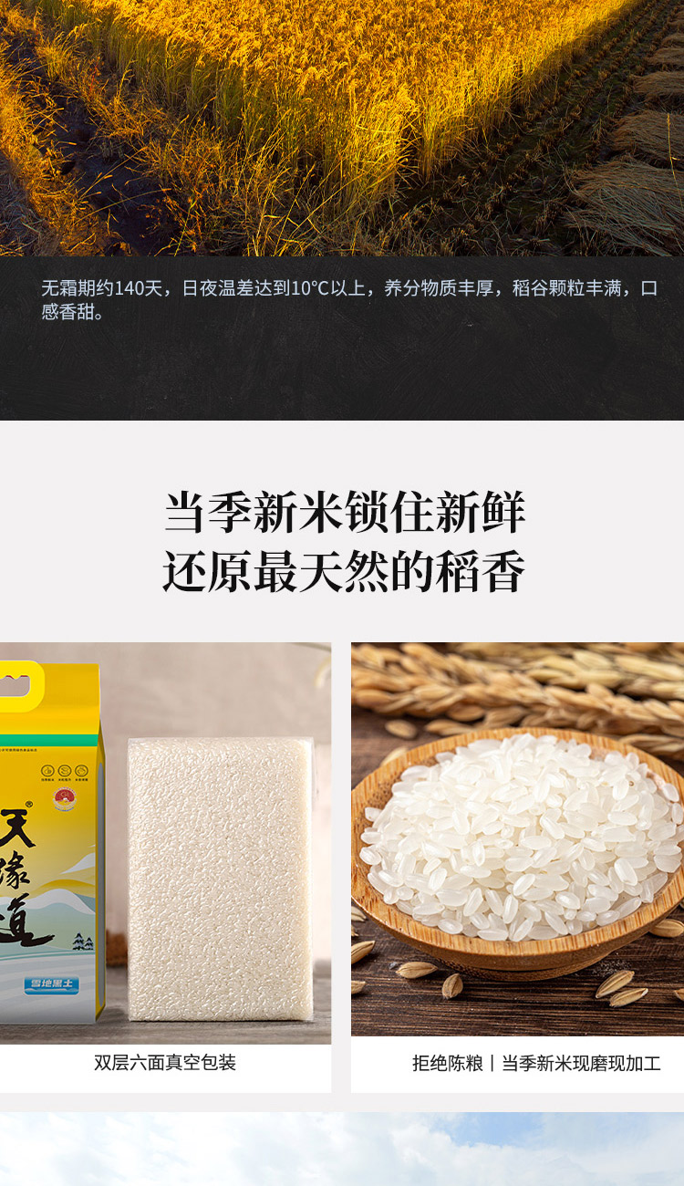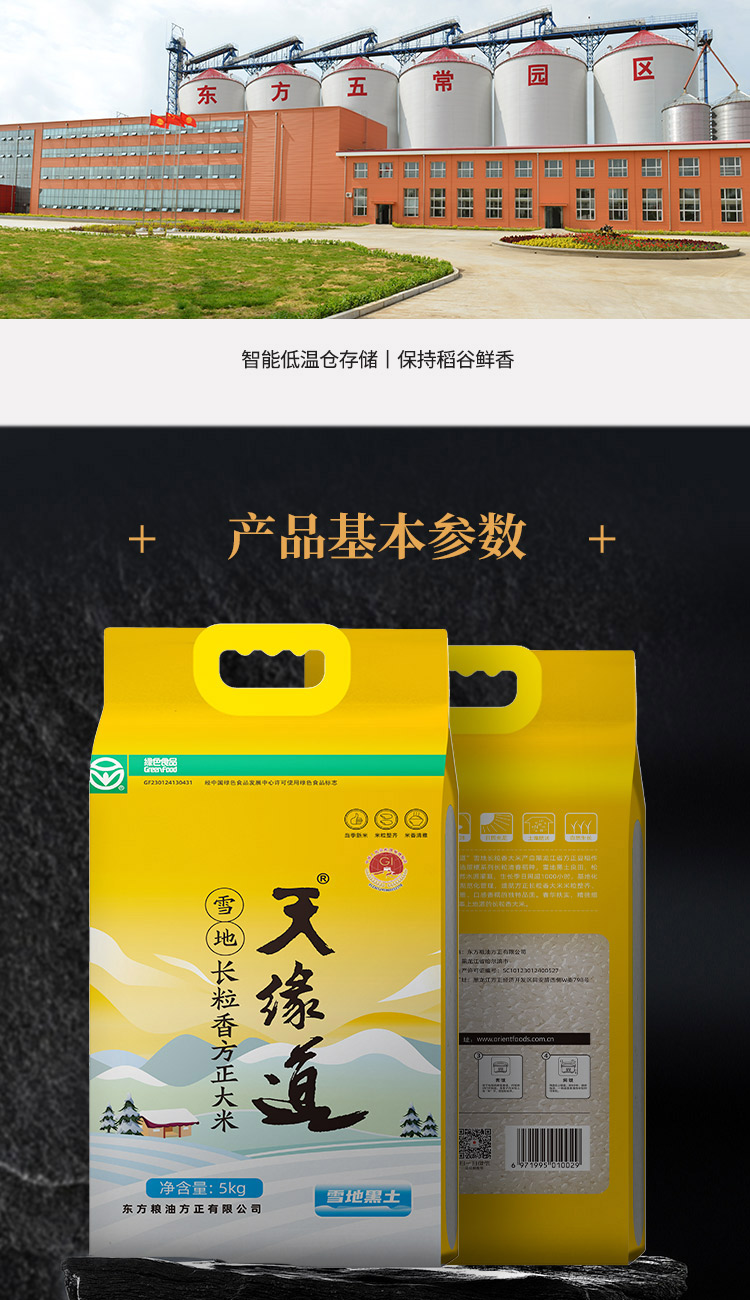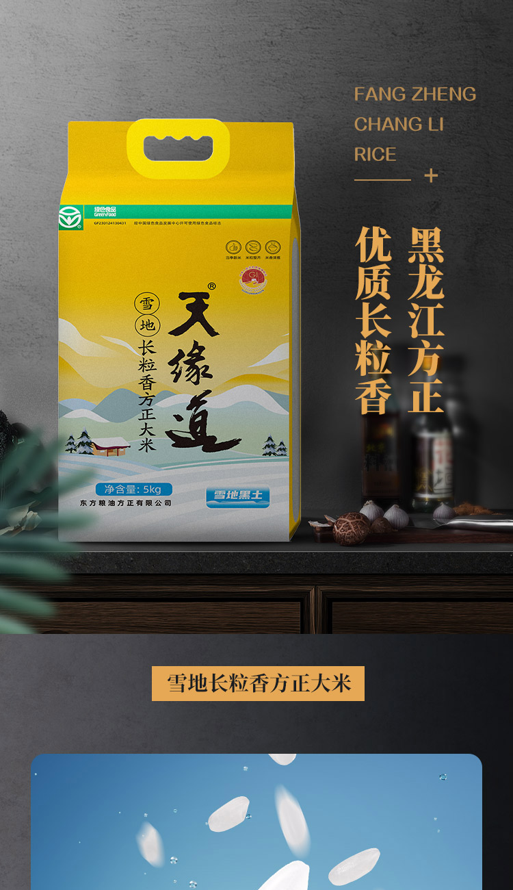 天缘道绿色雪地长粒香米方正大米六面塑包