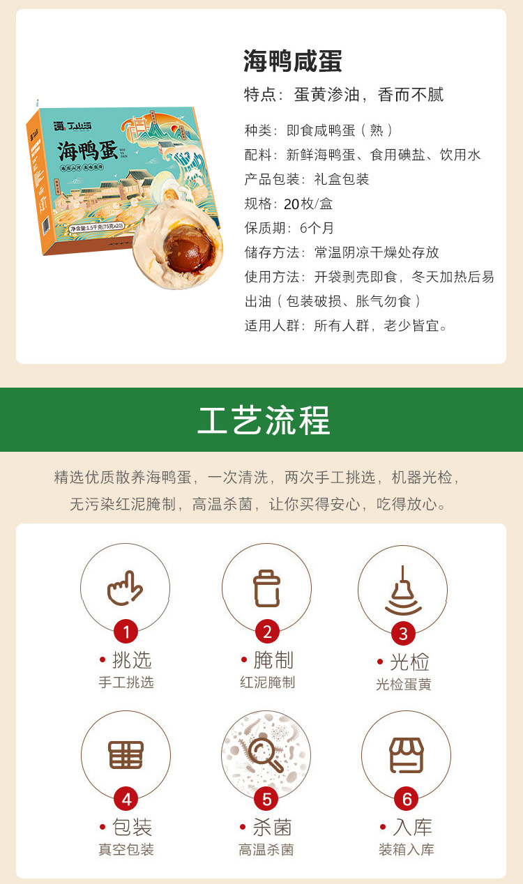 丁山河北海北部湾海鸭蛋75克*20枚1盒