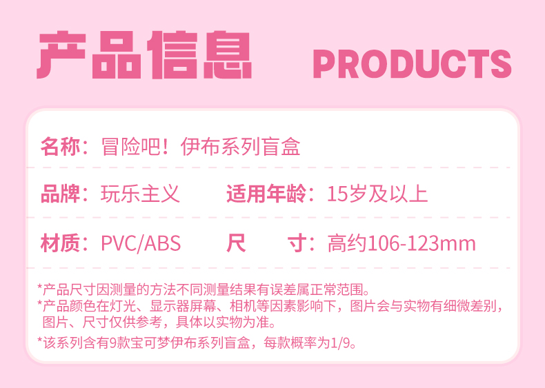 玩乐主义 冒险吧伊布系列 9只/盒 盲盒