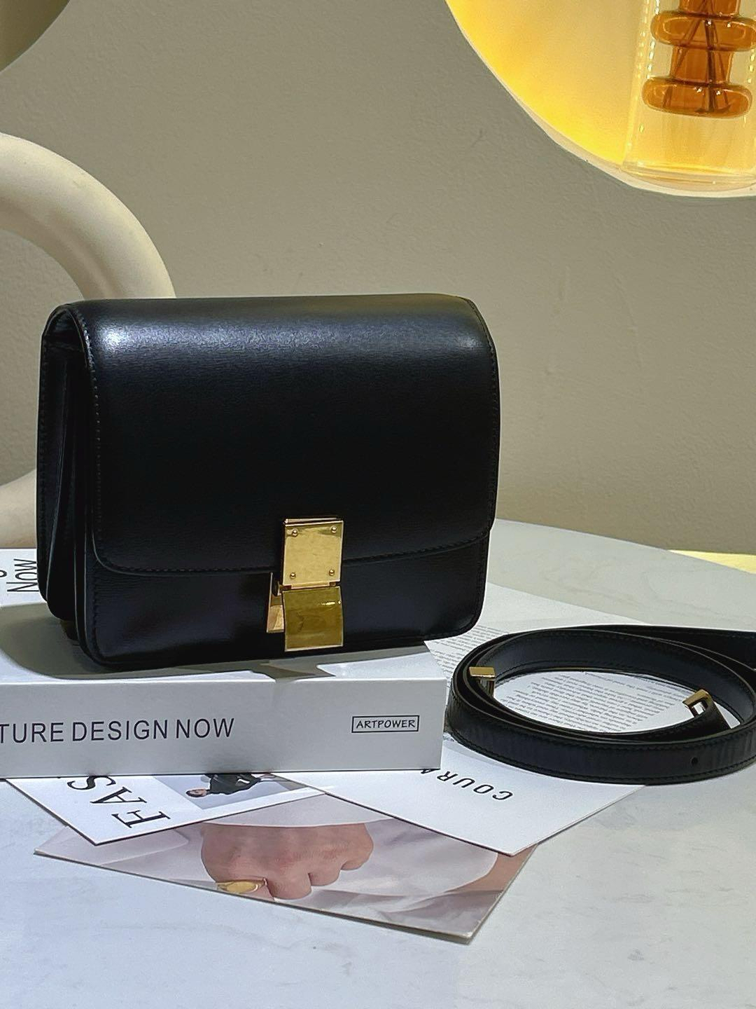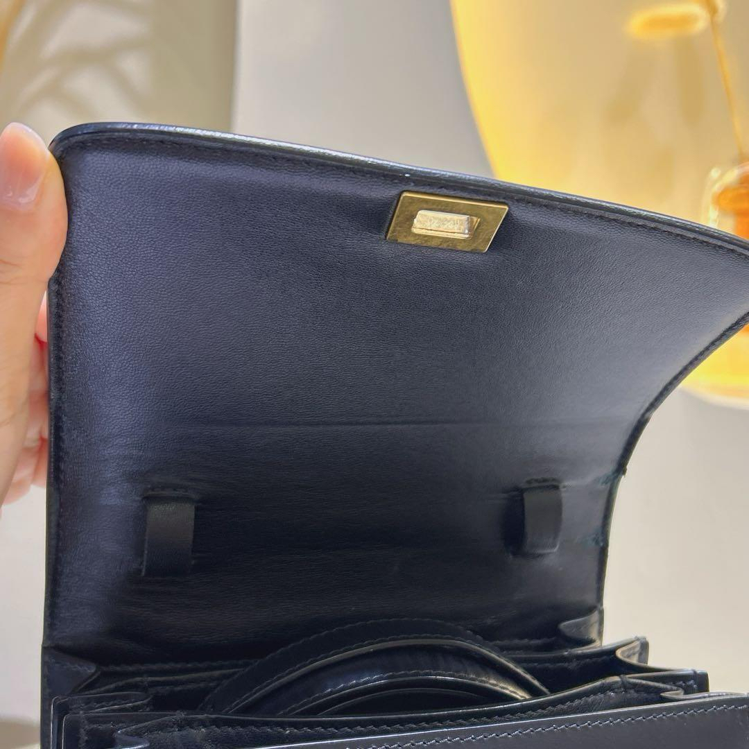 【商品详情】正品二手 Celine box 牛皮 黑金 小号 斜挎包☕️95新 16×11 配件:肩带。内翻盖两侧有使用摩擦 包底有一处小划痕。经典豆腐包