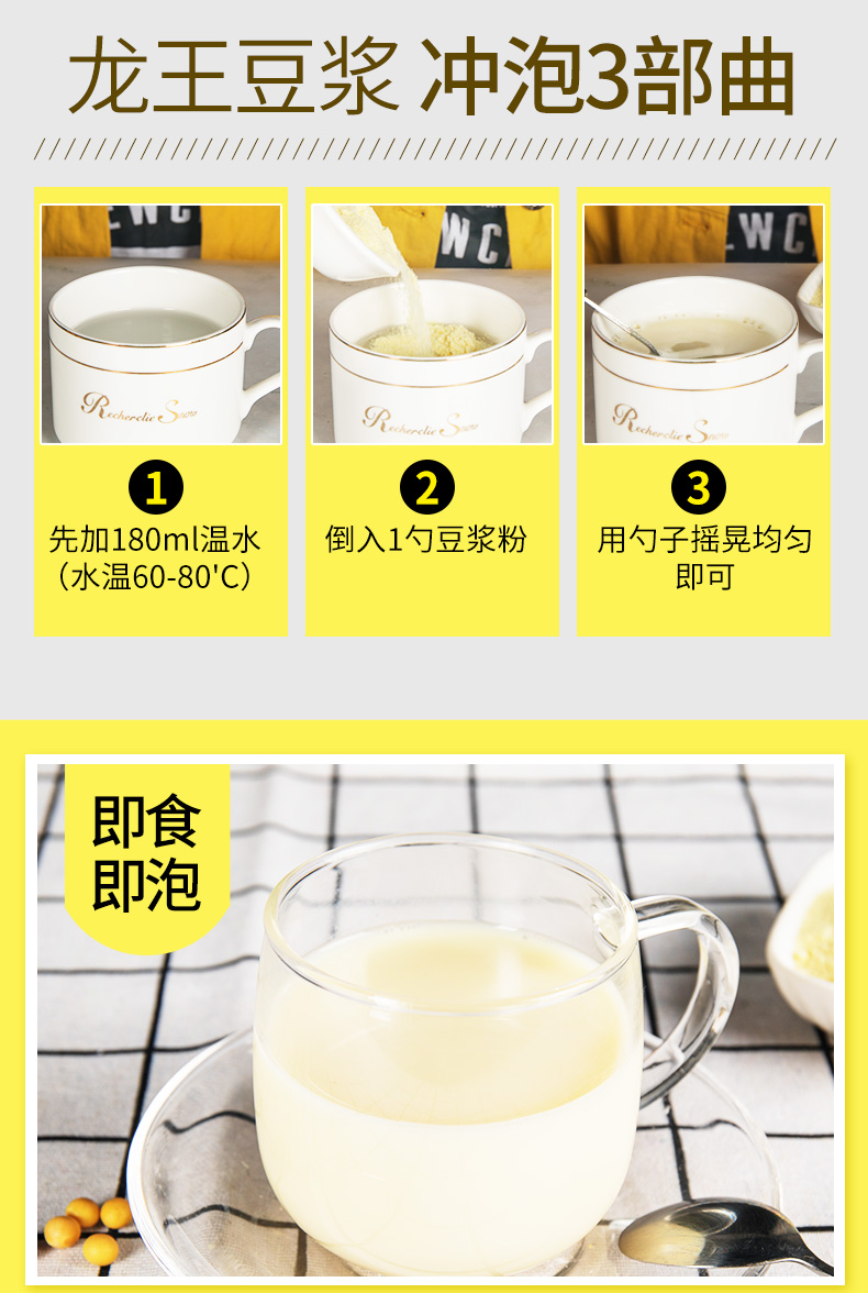 龙王甜味豆浆粉 加糖豆浆粉 480g/袋 早餐速溶冲饮粉 豆浆粉